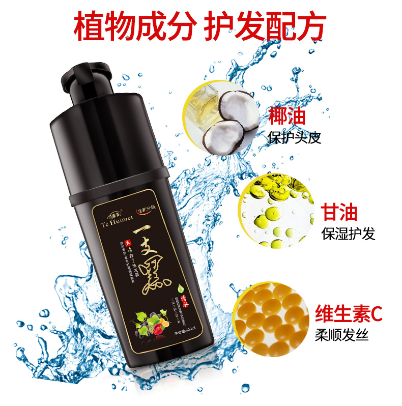染发剂植物一洗黑洗发水纯泡沫黑色男女自己泡泡染发膏剂霜一支黑