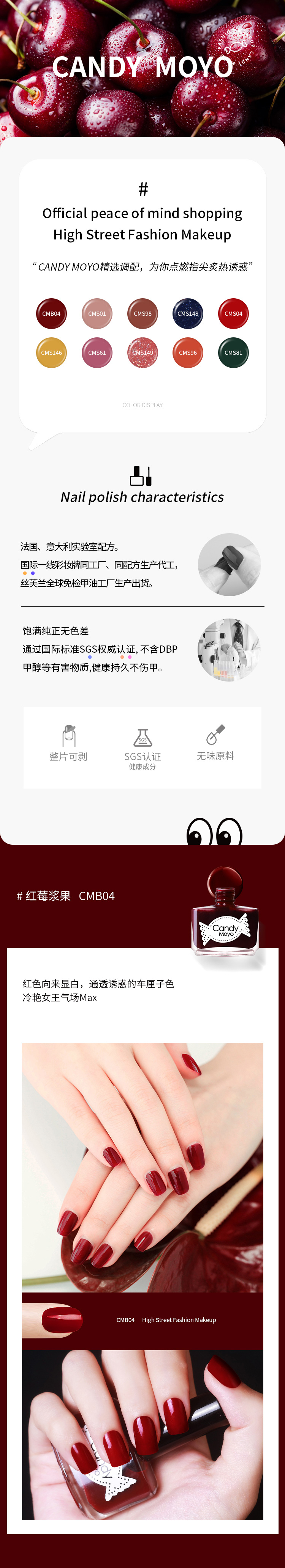 CandyMoyo可撕指甲油多款气场搭配,持久亮泽快速干,无有害成分,免烤使用方便,时髦的信条,,爱美女的小姐姐们约起来。