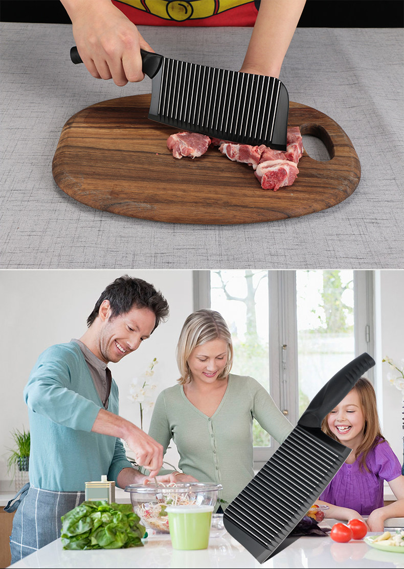 利瓷波浪纹不锈钢菜刀不粘刀切片刀砍骨刀厨刀菜刀时尚菜刀送剪刀