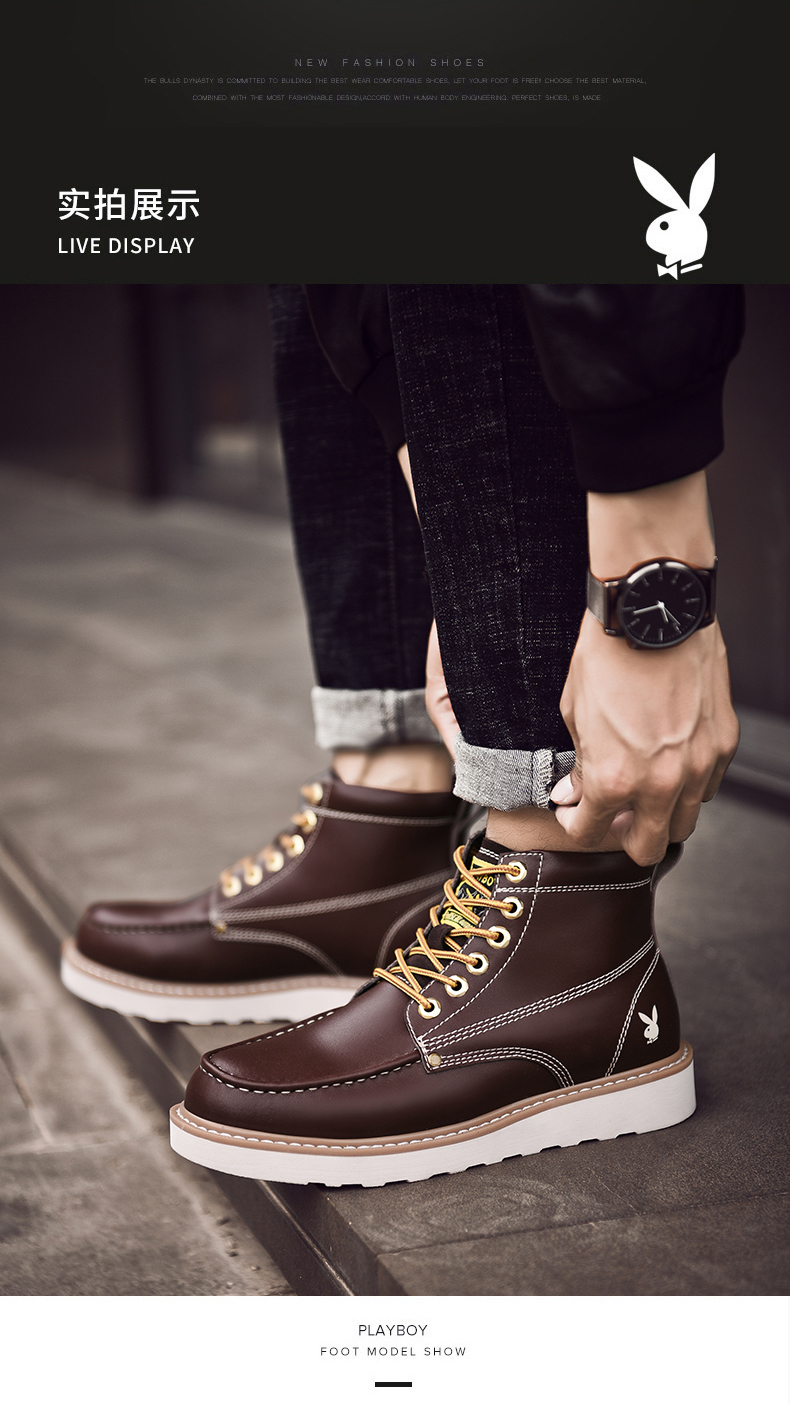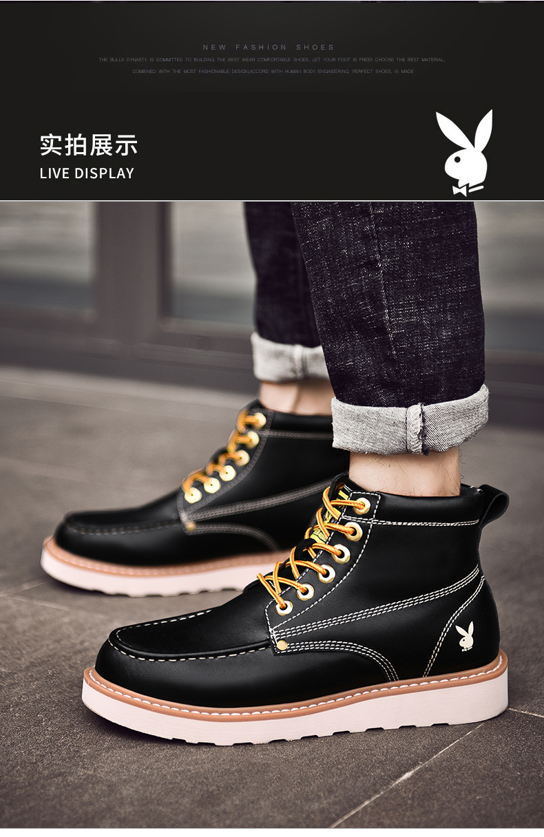 花花公子品牌,街头型格,潮搭马丁靴,时尚英伦风,舒适耐穿,演绎你的炫酷时尚感!
