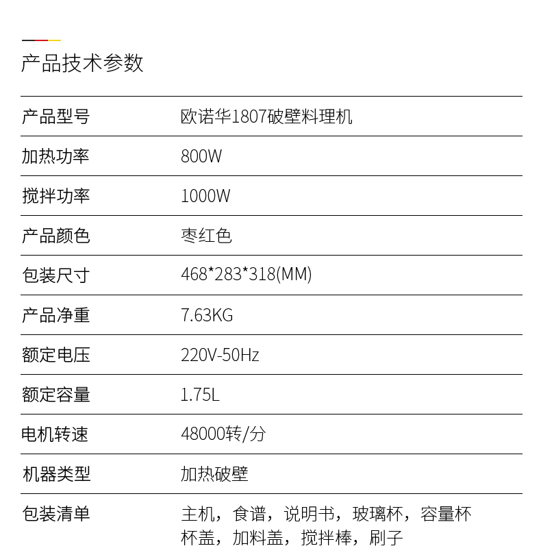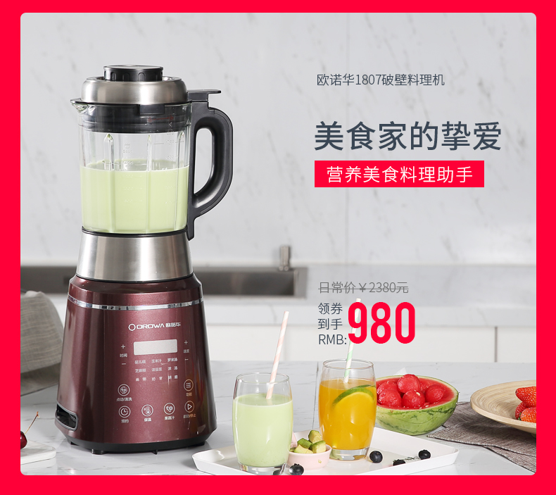 德国欧诺华1807破壁机加热家用全自动豆浆多功能新款料理机研磨机