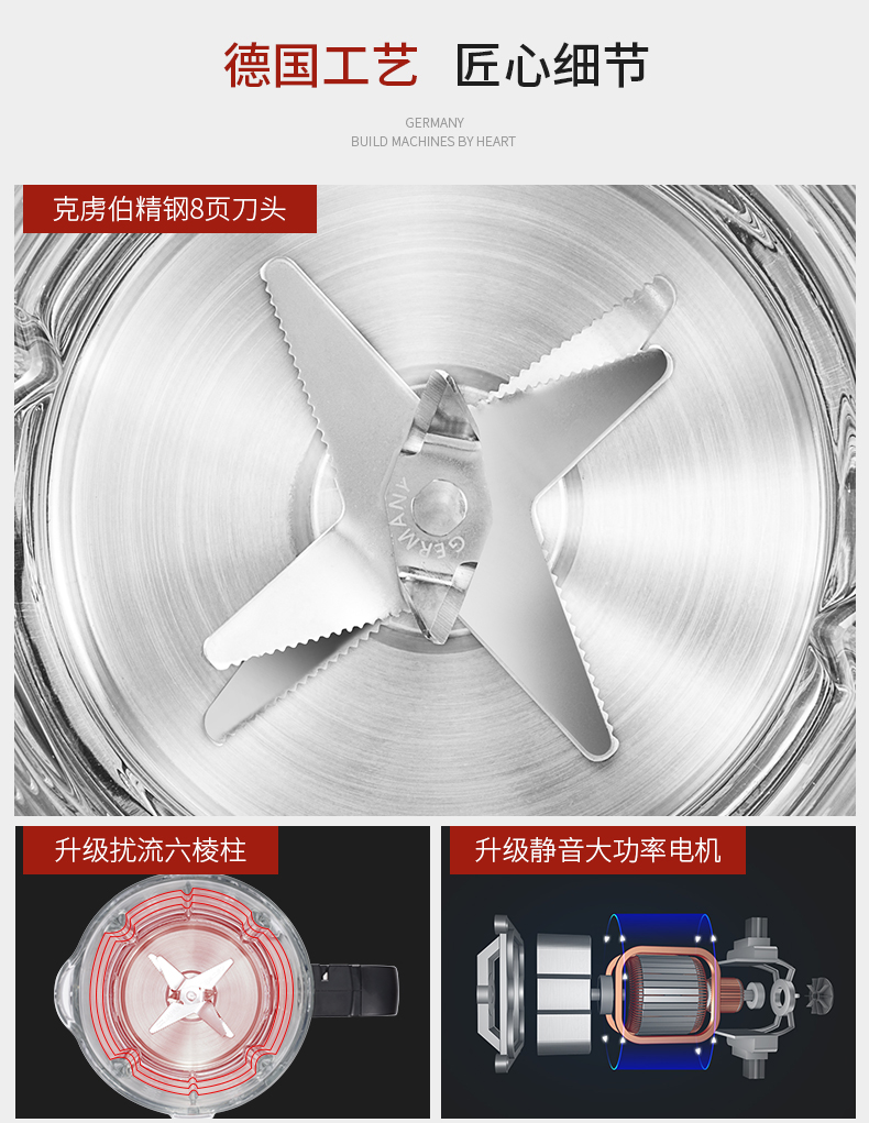 德国品牌破壁机家用多功能,全自动加热,超静(低)音破壁机,质保10年!送!冷打料理杯+破壁礼包+五谷杂粮.