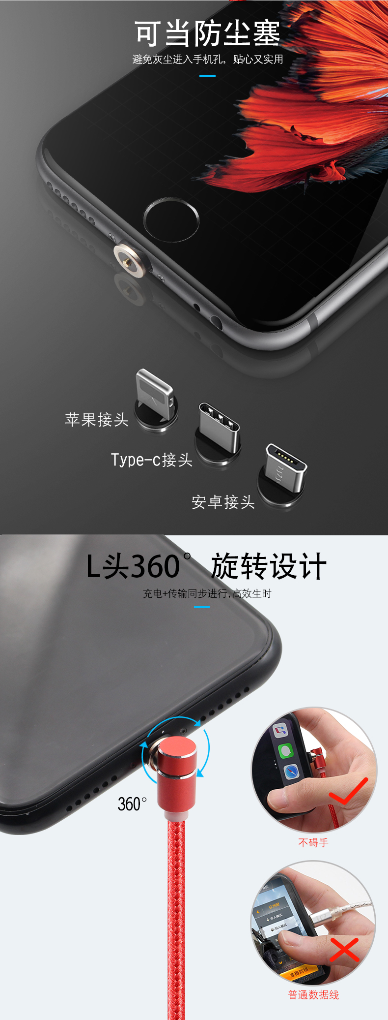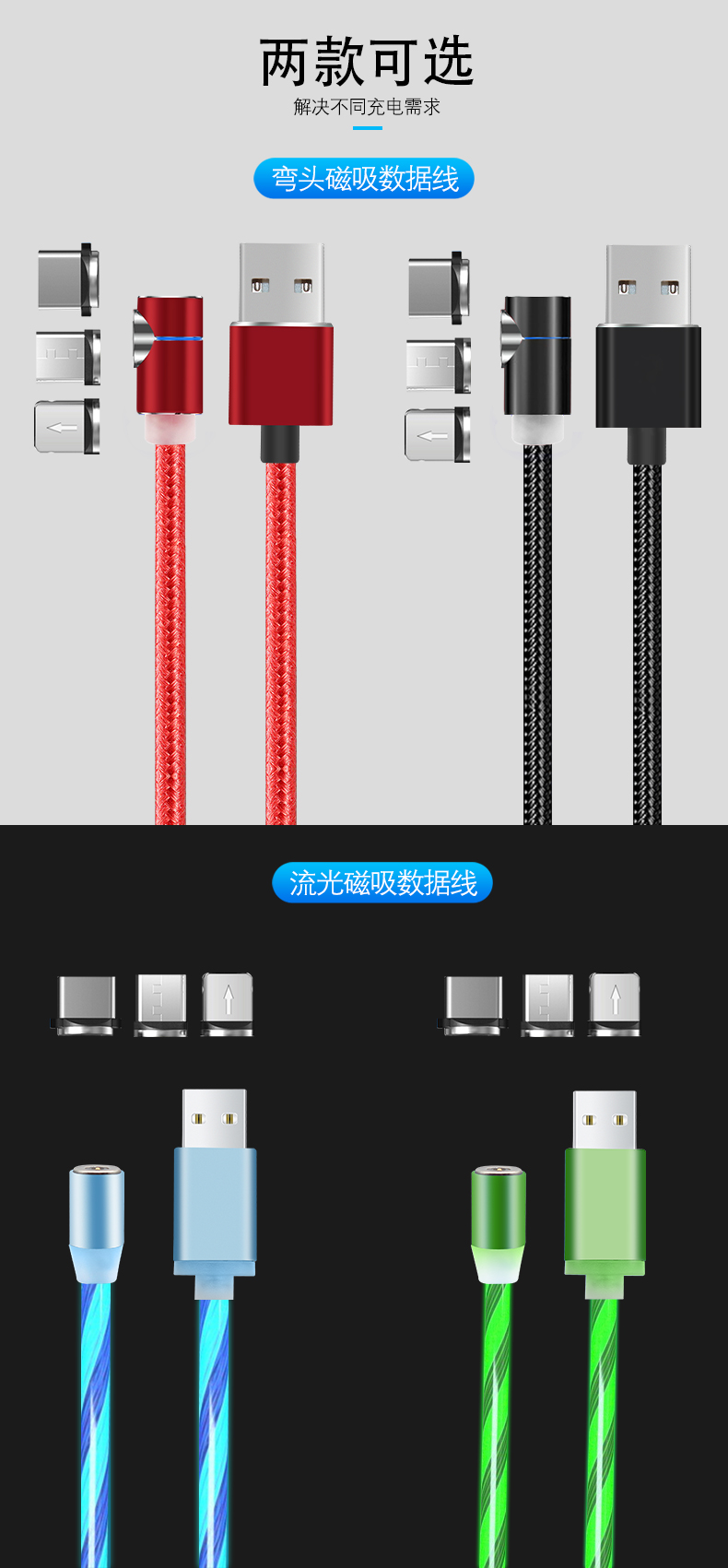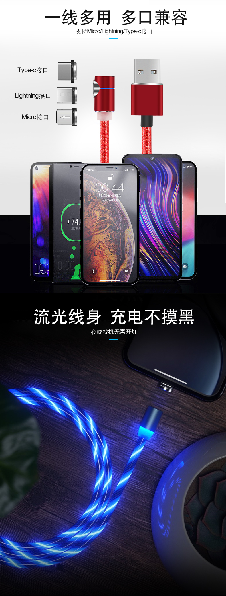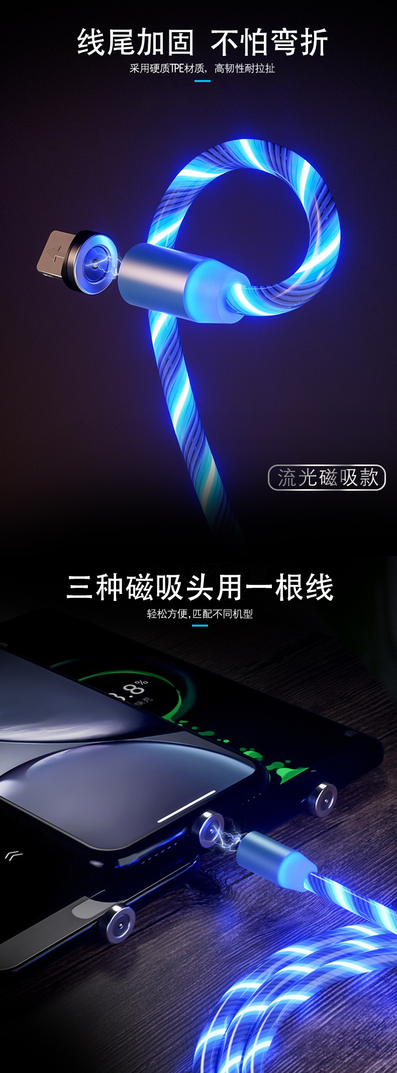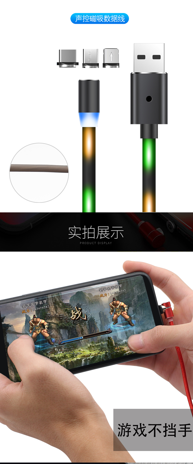 【抖音爆款多色可选】强力磁吸声控头快充数据线!!!安卓苹果Type-c磁吸数据线充电器,接头360度可旋转,磁吸盲插,一碰即充,连接稳固不松动,充电提速99%!!!限量抢购!!!