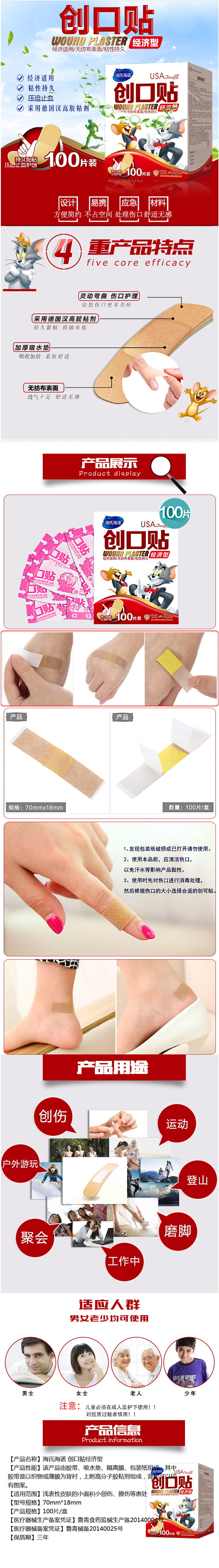 海氏海诺创可贴100片/盒,弹力透气防磨脚贴止血创口贴,家用可爱ok绷,超强弹力,活动自如,包扎外用