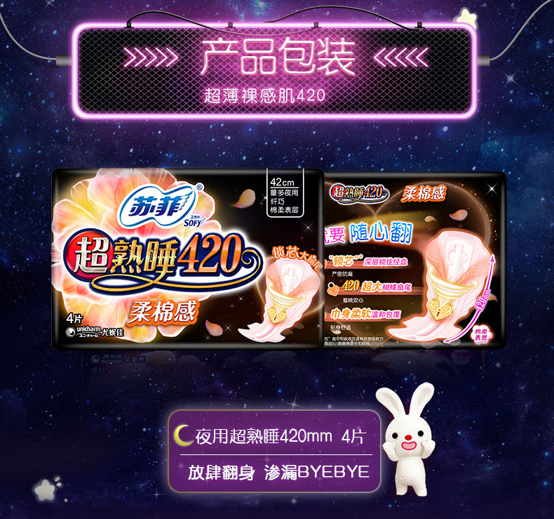 苏菲卫生巾女日用420夜用超熟睡姨妈巾组合装旗舰店官网日夜组合4