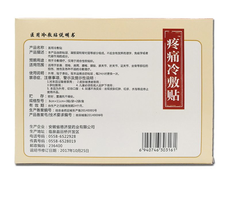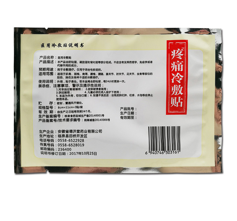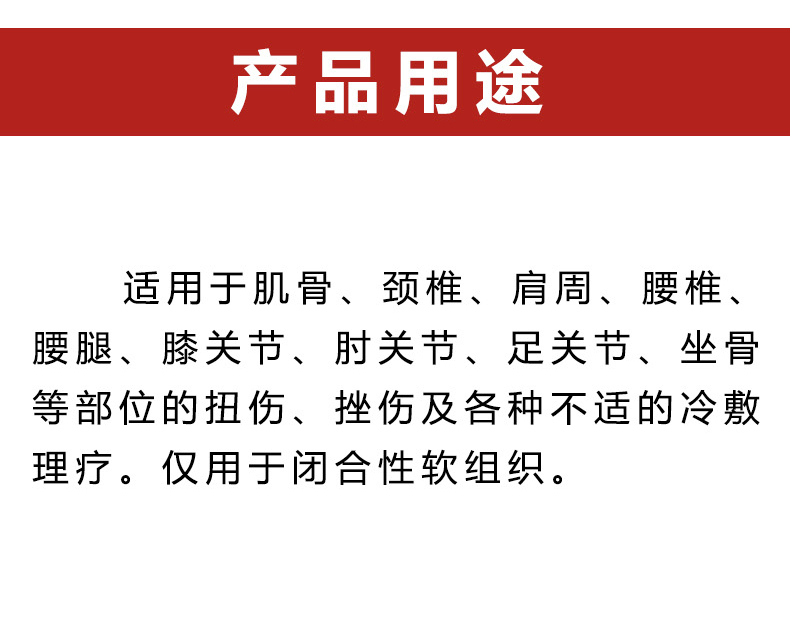 医用疼痛冷敷贴,局部外用,缓解因扭伤挫伤,劳损引起的颈,肩,腰,膝关节疼痛等不适症状,安全有效,哪里疼痛贴哪里。