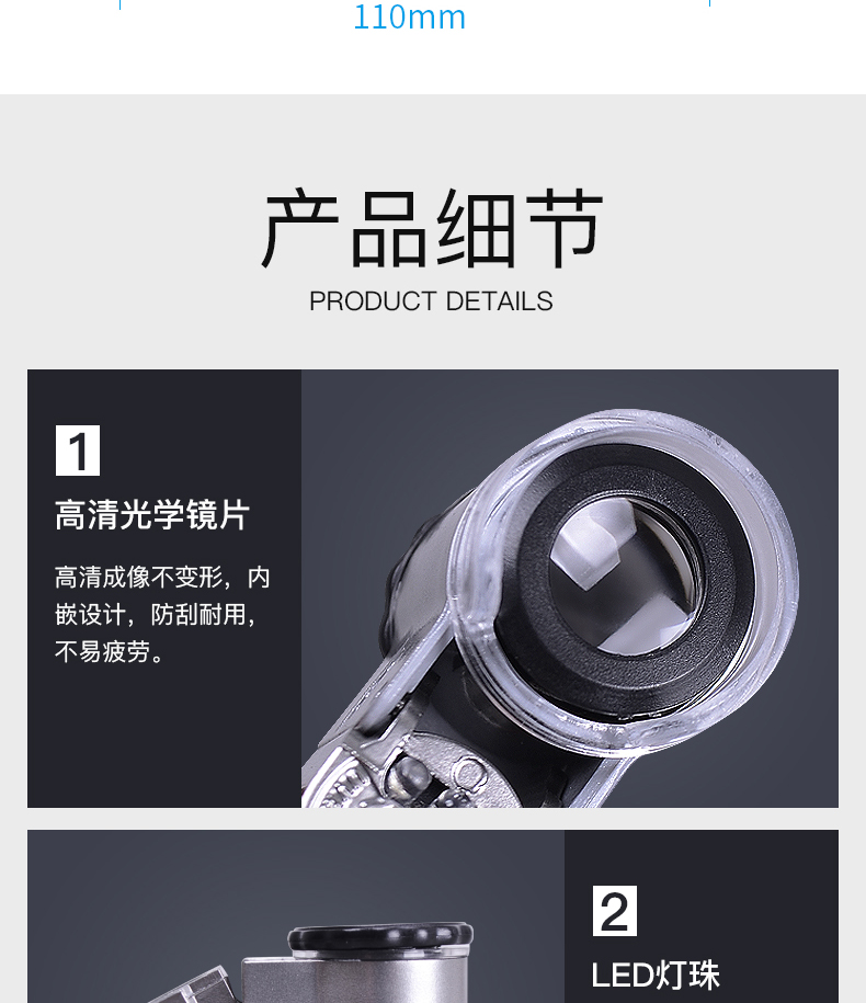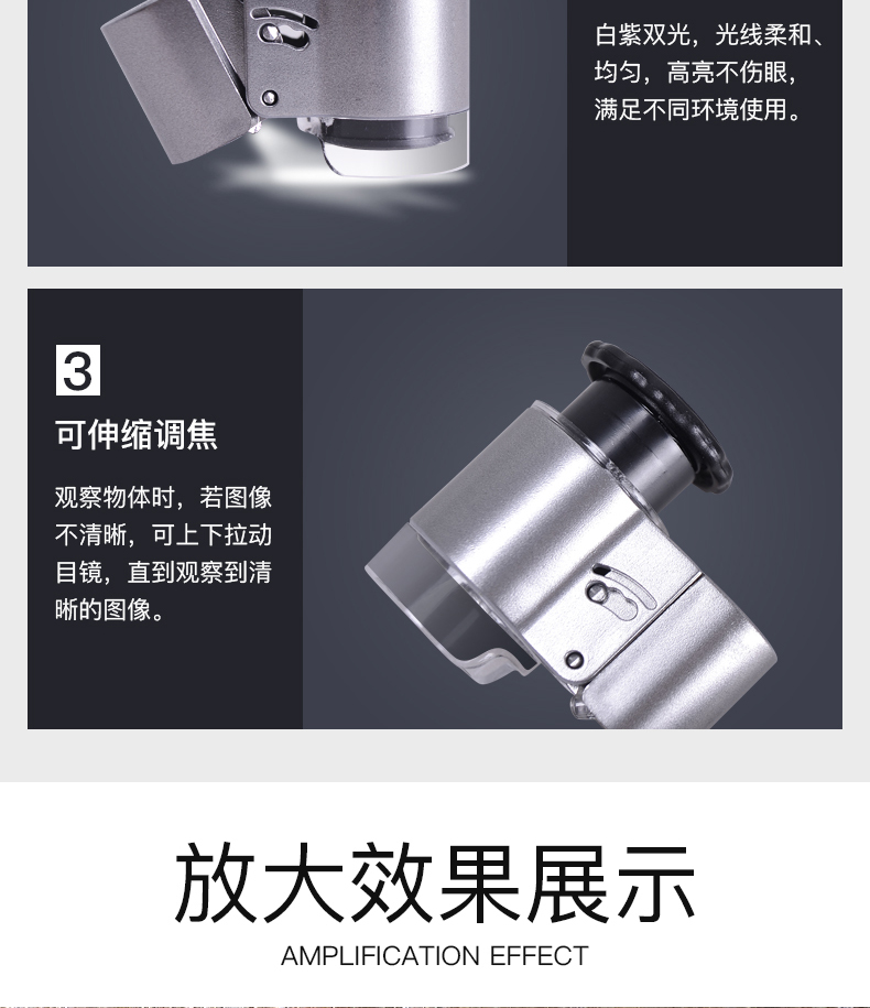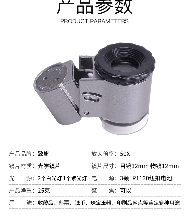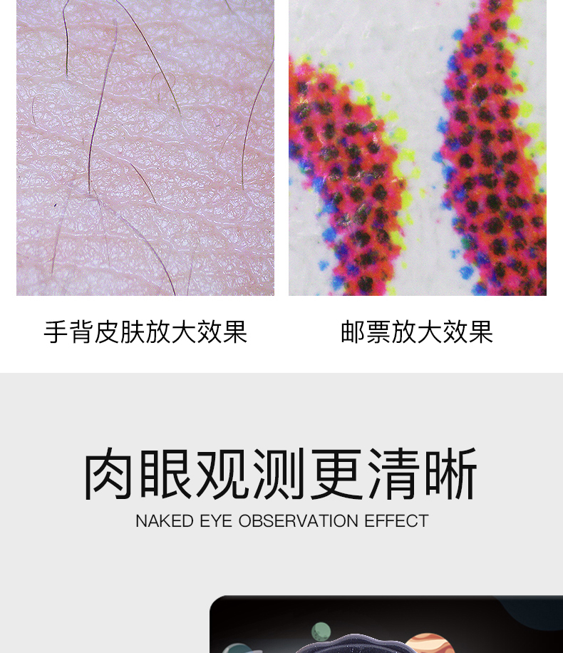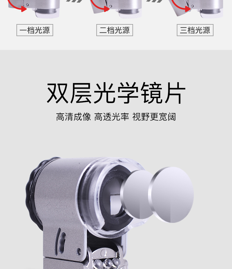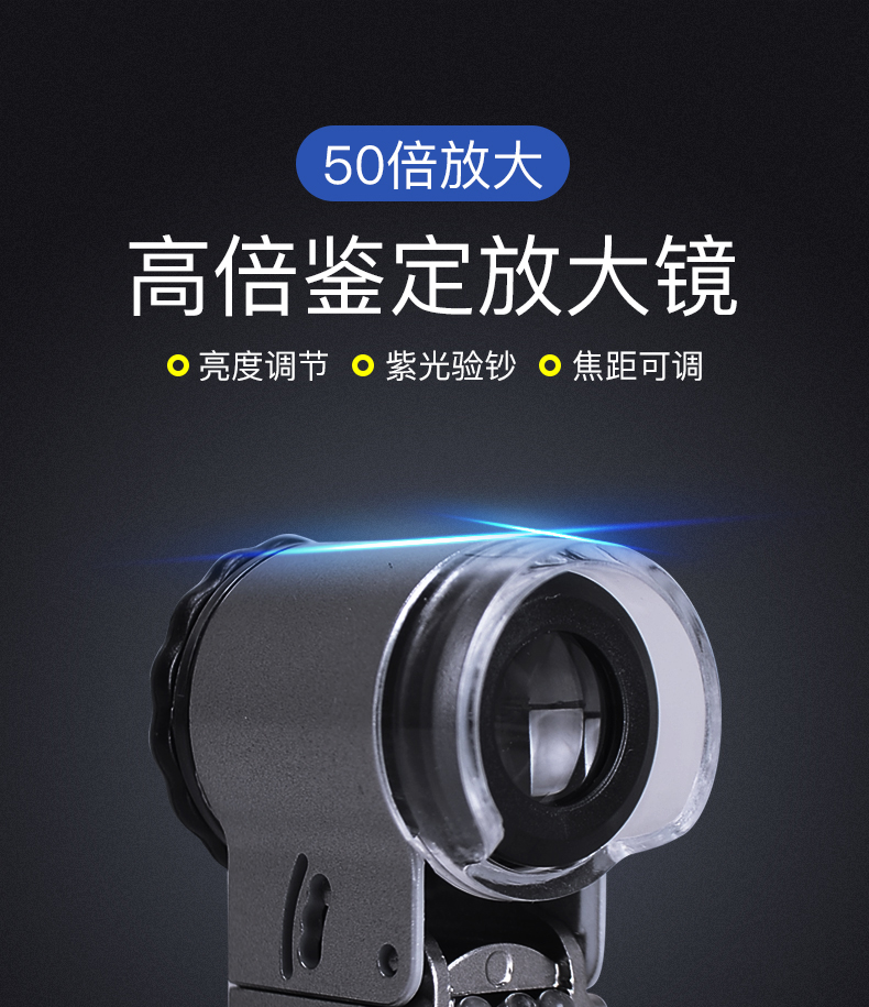 致旗德国工艺高倍高清放大镜带灯100倍50手机显微镜迷你镜头儿童科学手机用专业专用珠宝鉴定1000便携式5000