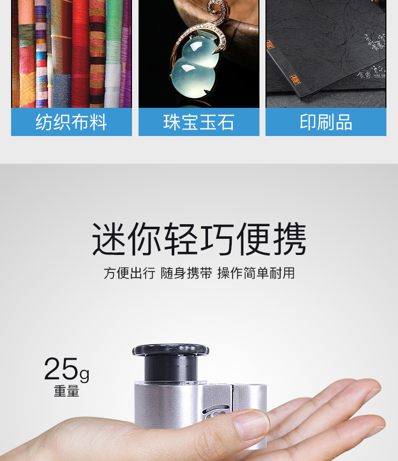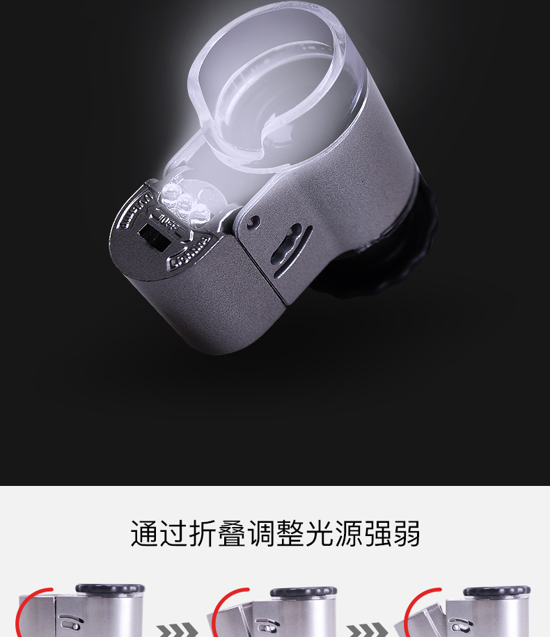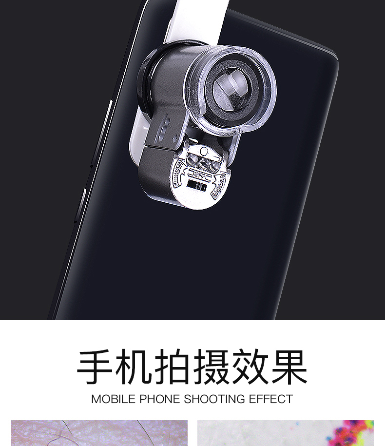 高倍迷你手机放大镜,带LED灯60倍100倍高清鸽眼,迷你珠宝鉴定放大镜手持显微镜便携式,可验钞鉴定邮票翡翠古文玩玉石,送运费险,七天无理由退货,6个月保修