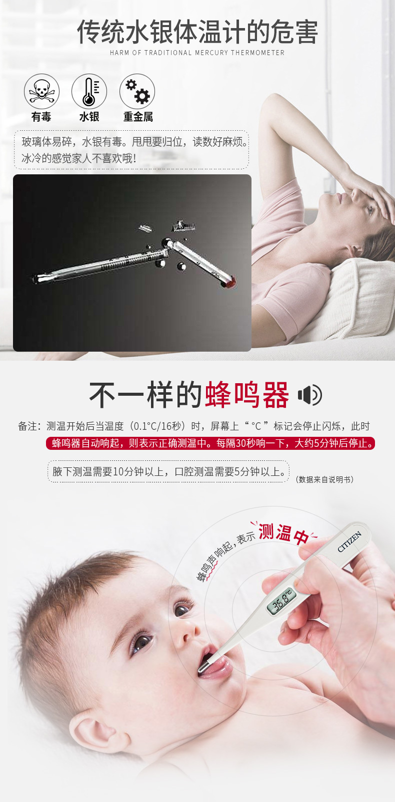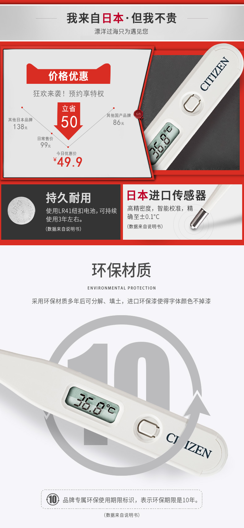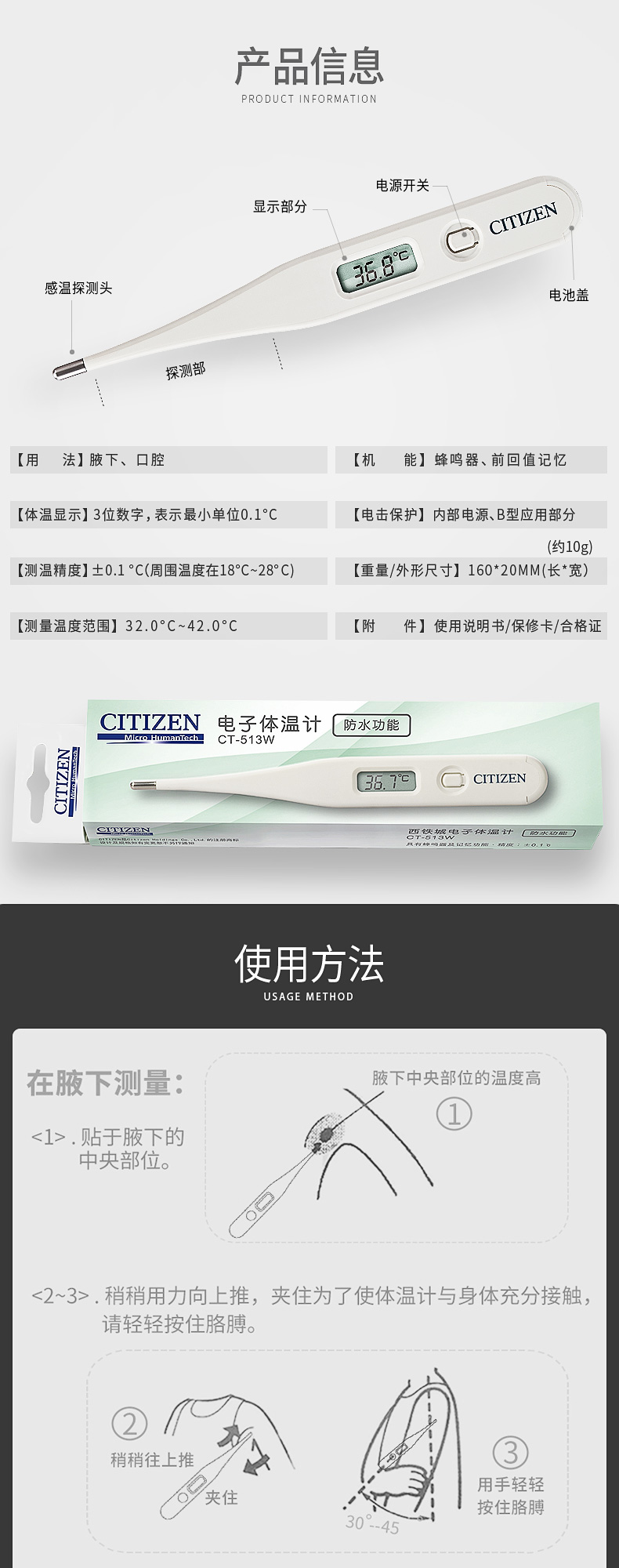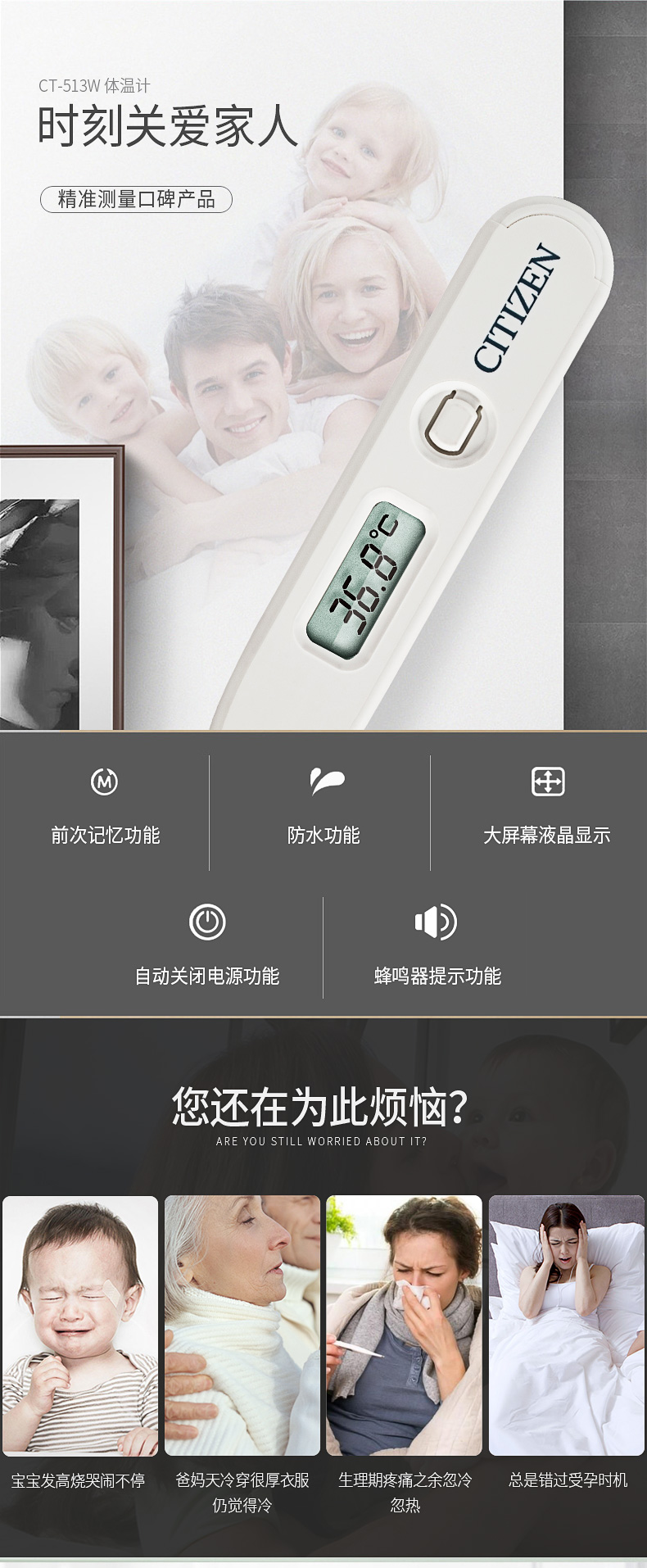 日本西铁城/CITIZEN实测家用成人儿童电子体温计 CT-513W