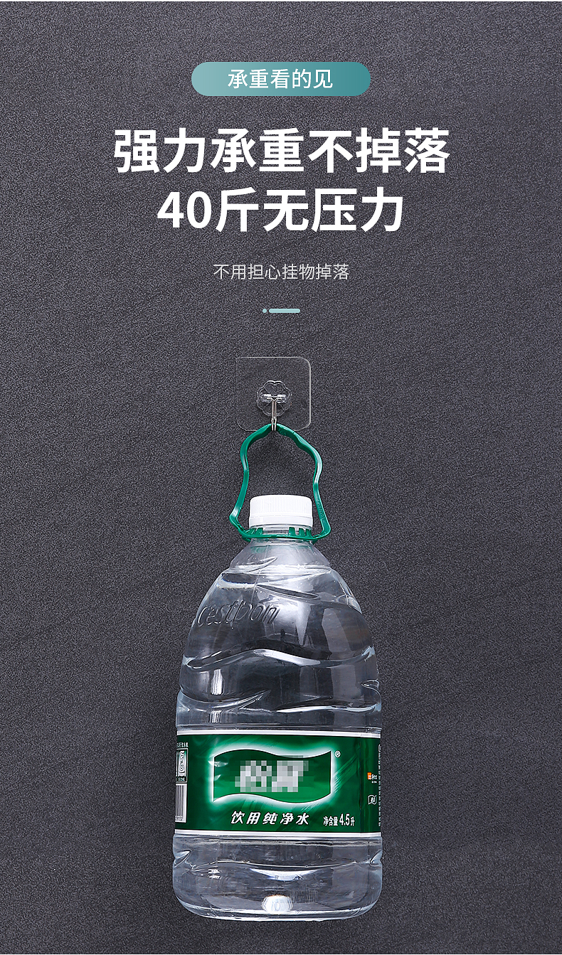 【强烈推荐】累计好评94万+!免打孔无痕挂钩,超强20斤承重!稳挂桶装水!防水,浴室一样用!挂上不会掉,撕下不伤墙体!180°可调角度,房顶、墙面、地面,都能挂!【七天无理由退换】