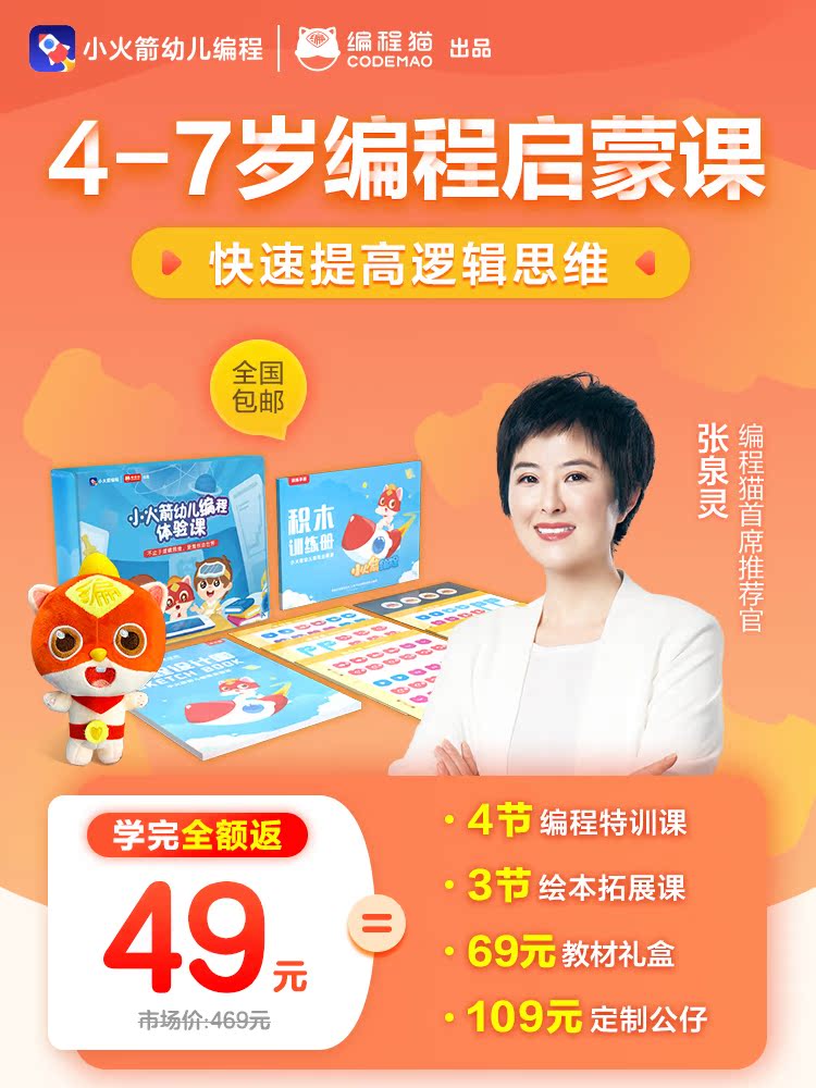 【券后5.9元】给孩子一个学习编程的机会来了。编程猫少儿编程启蒙课,孩子学编程,越学越聪明,学习更自信。