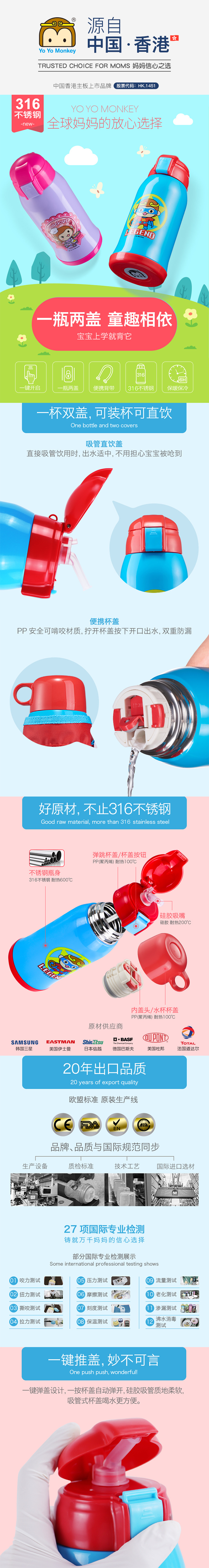 香港优优马骝儿童316不锈钢,24小时长效保温,大容量保温杯两盖吸管杯带杯套水壶。