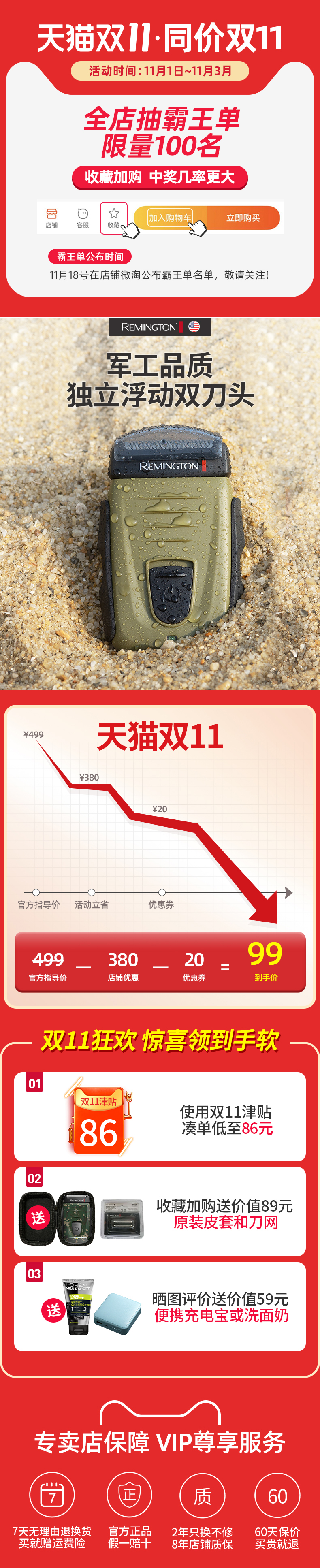Remington雷明登剃须刀电动男士刮胡刀 充电式 往复式胡须刀正品