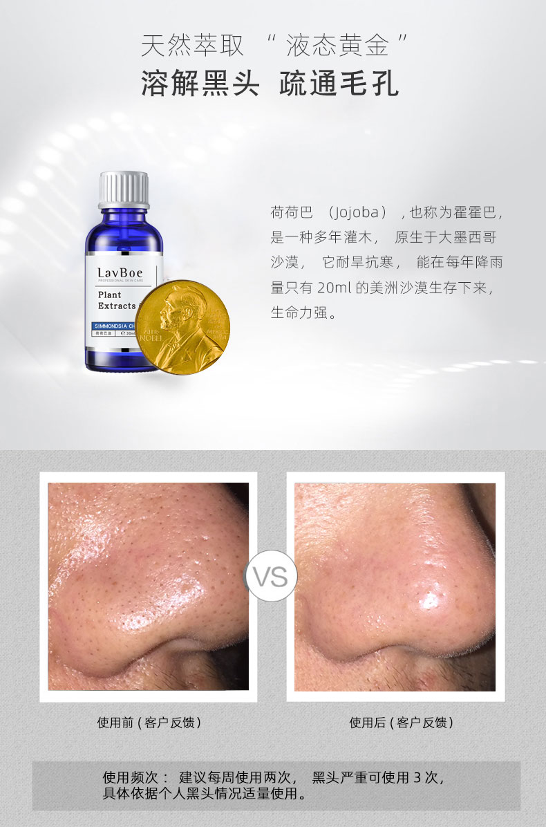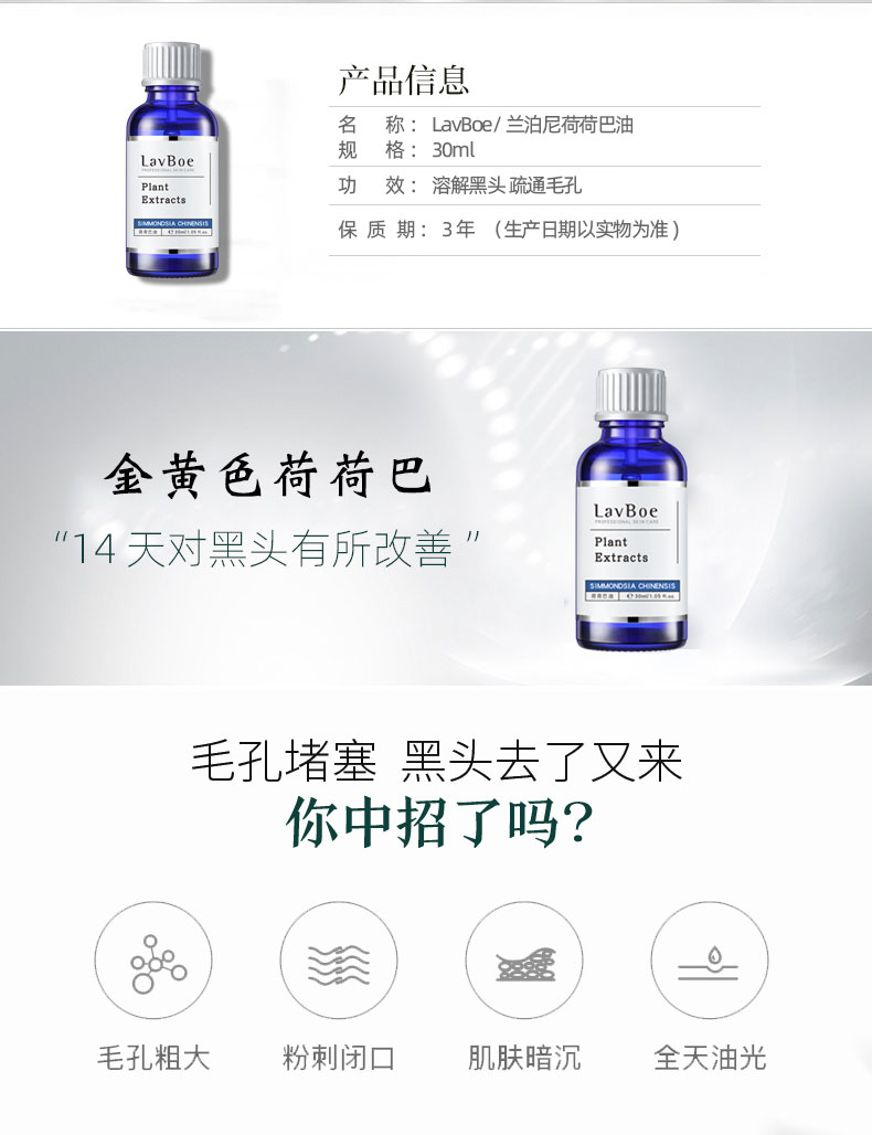 LavBoe/兰泊尼荷荷巴油去黑头精油溶解黑头精油霍霍巴油正品