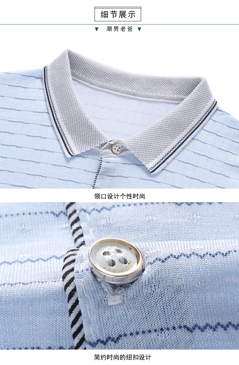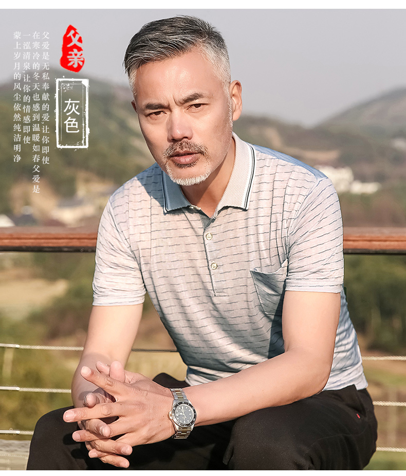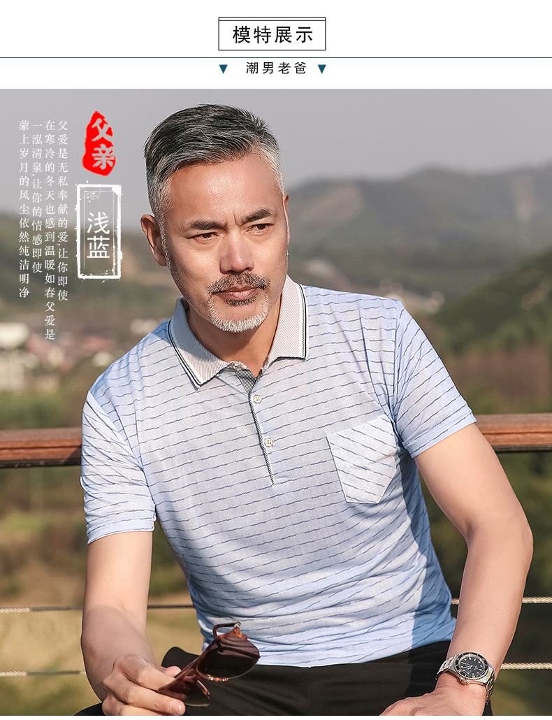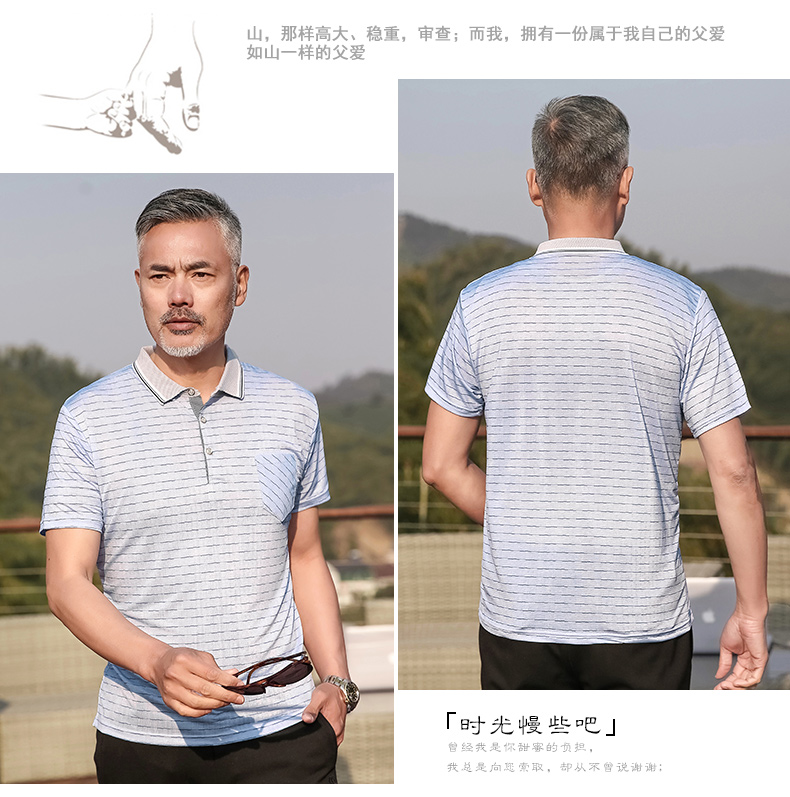 中年男装短袖t恤爸爸夏装冰丝休闲宽松翻领中老年半袖polo衫口袋