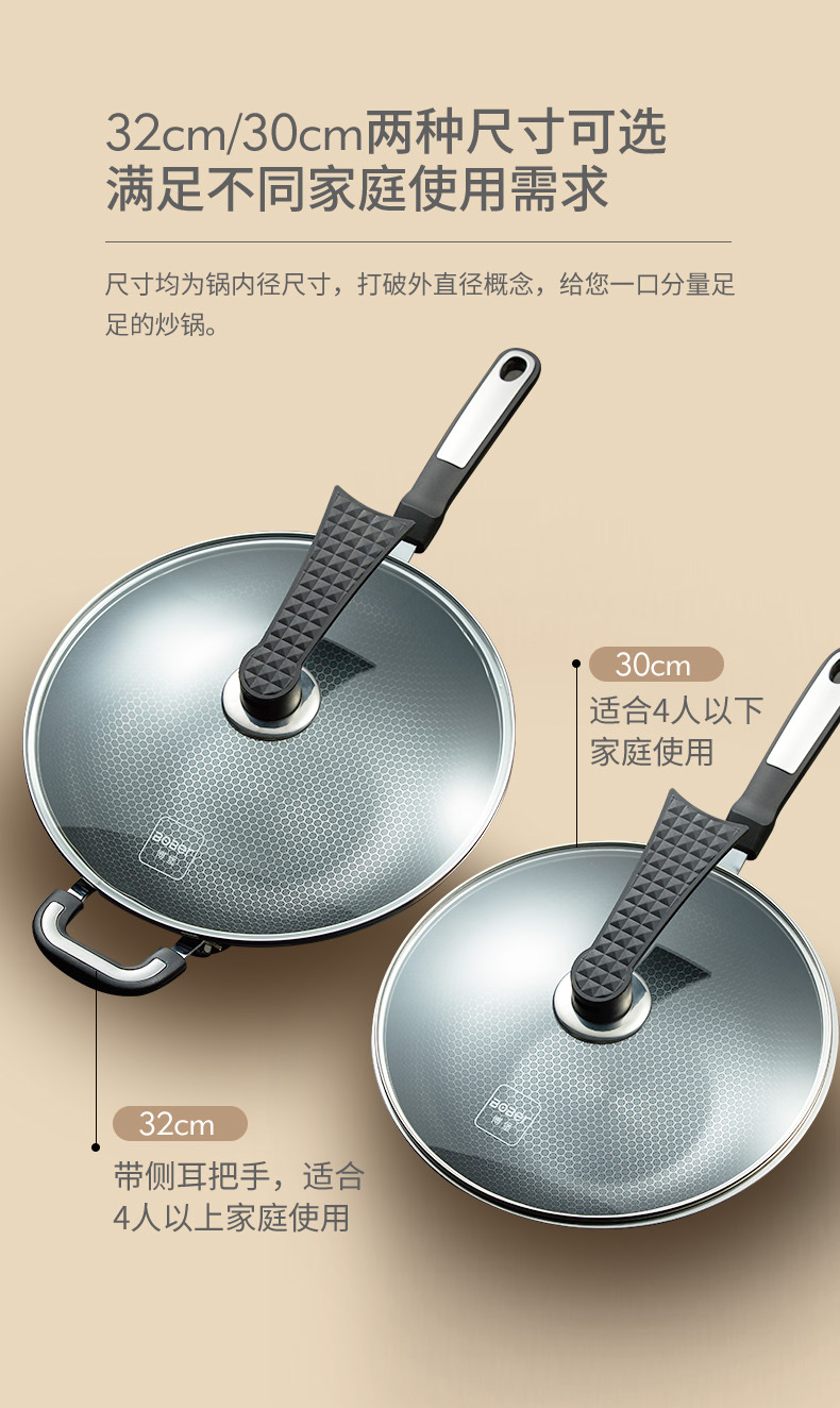 【博堡旗舰店】全蜂窝不粘锅,特殊蜂窝网纹,减少油烟,炉灶通用,透明壳锅盖,让爆炒更痛快,久用不变形,受热均匀,防烫防滑可悬挂手柄~【赠运费险】