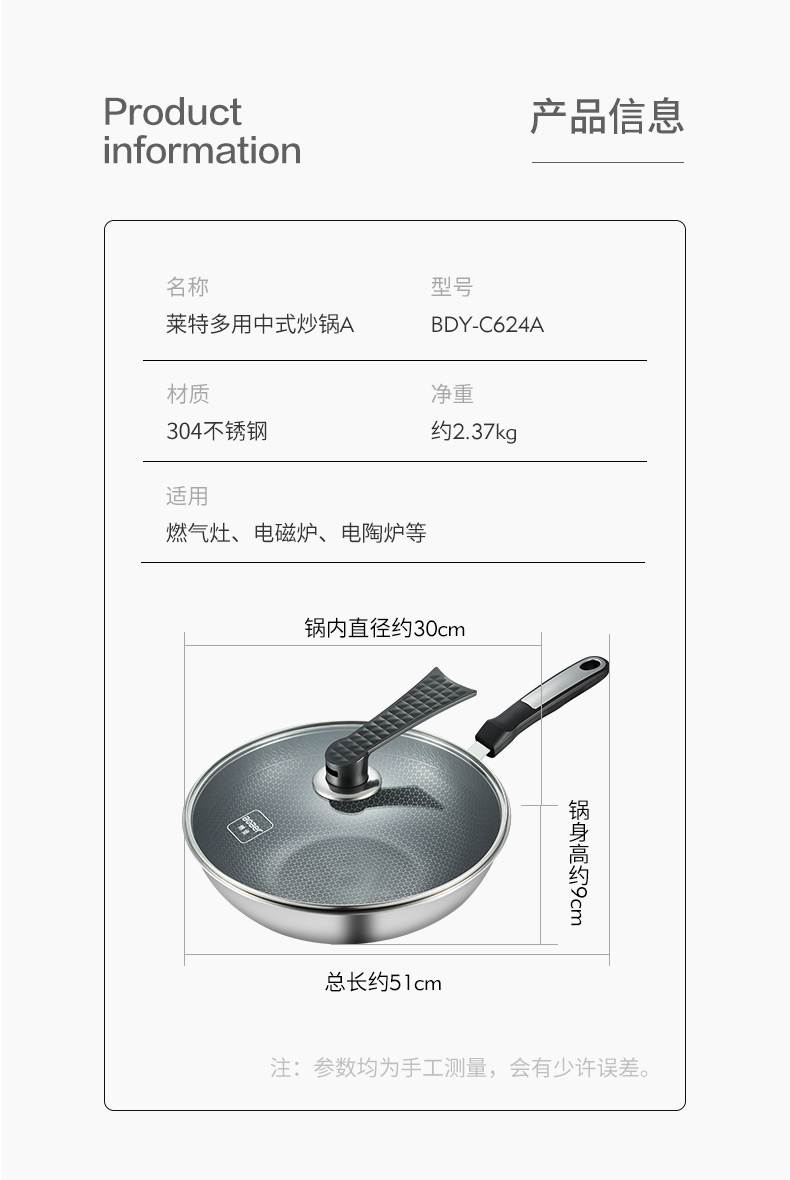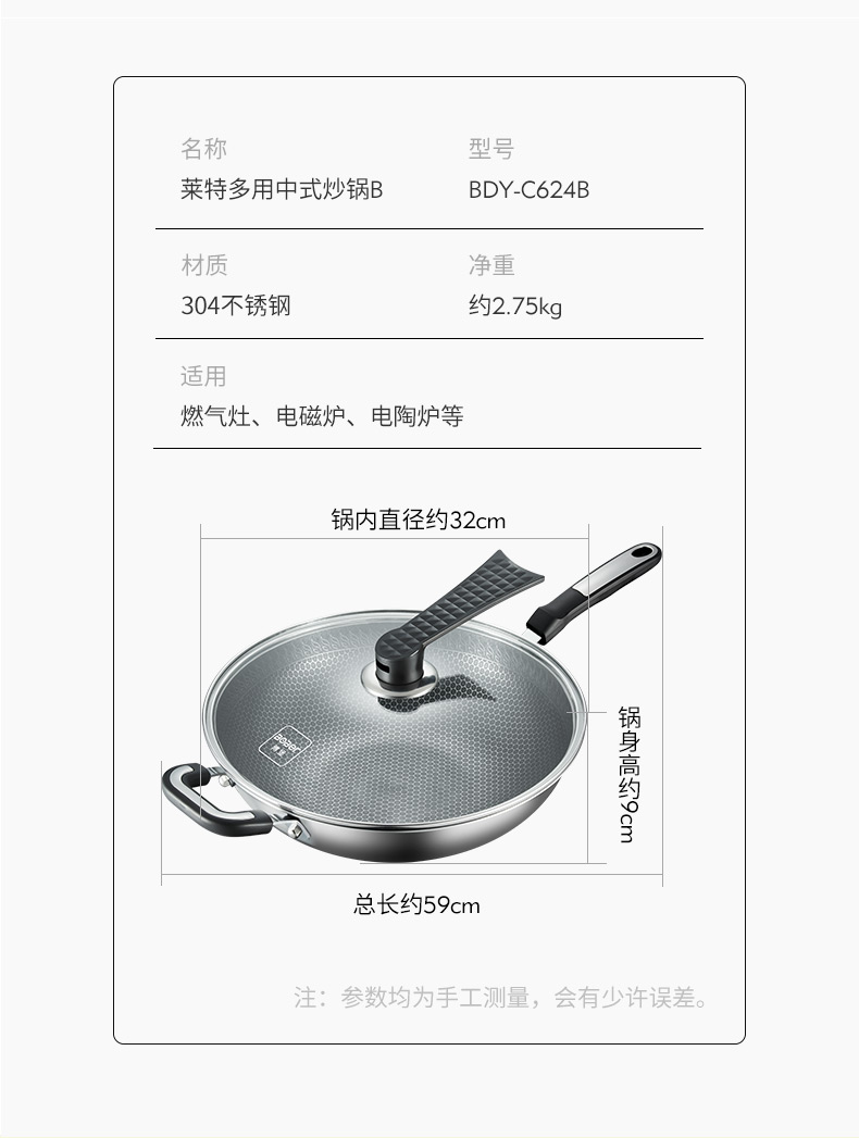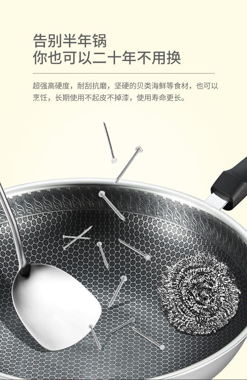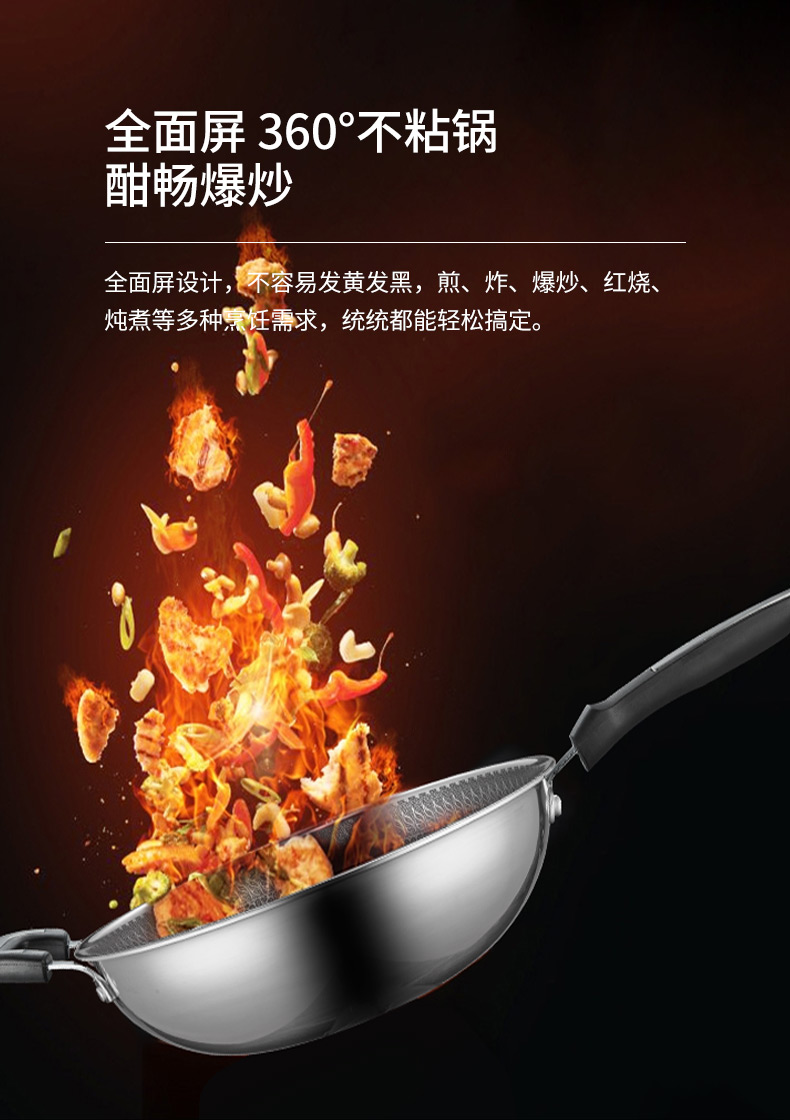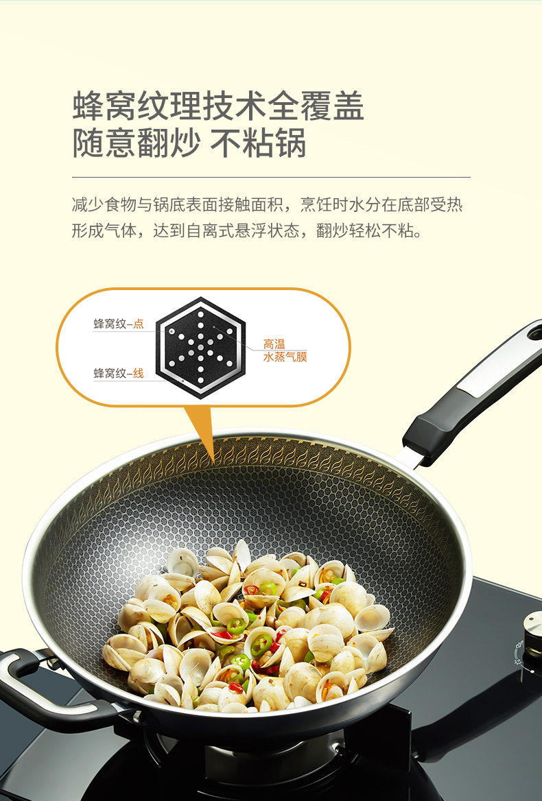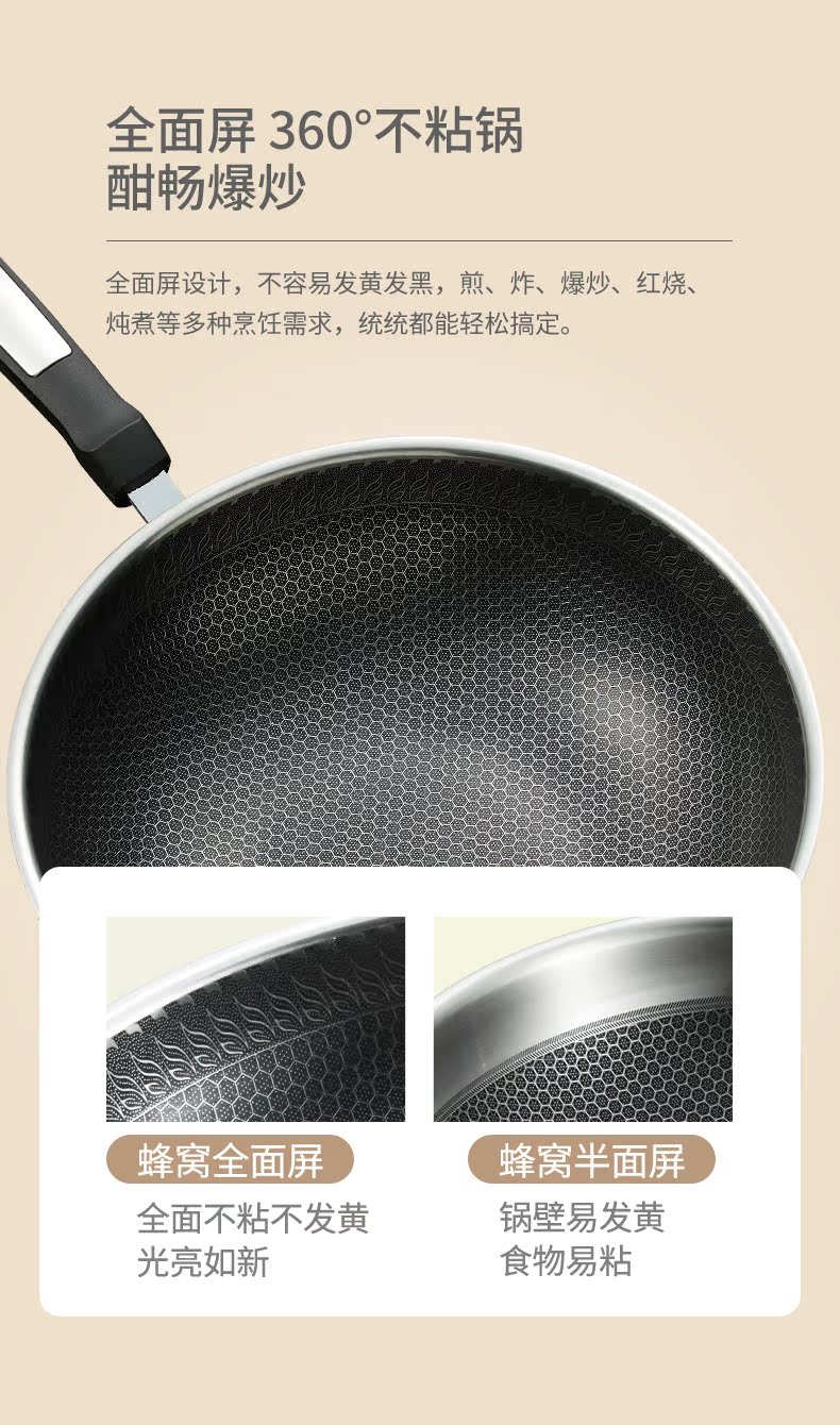 博堡蜂窝不粘锅炒锅家用304不锈钢炒菜锅电磁炉煤气灶专用不沾锅