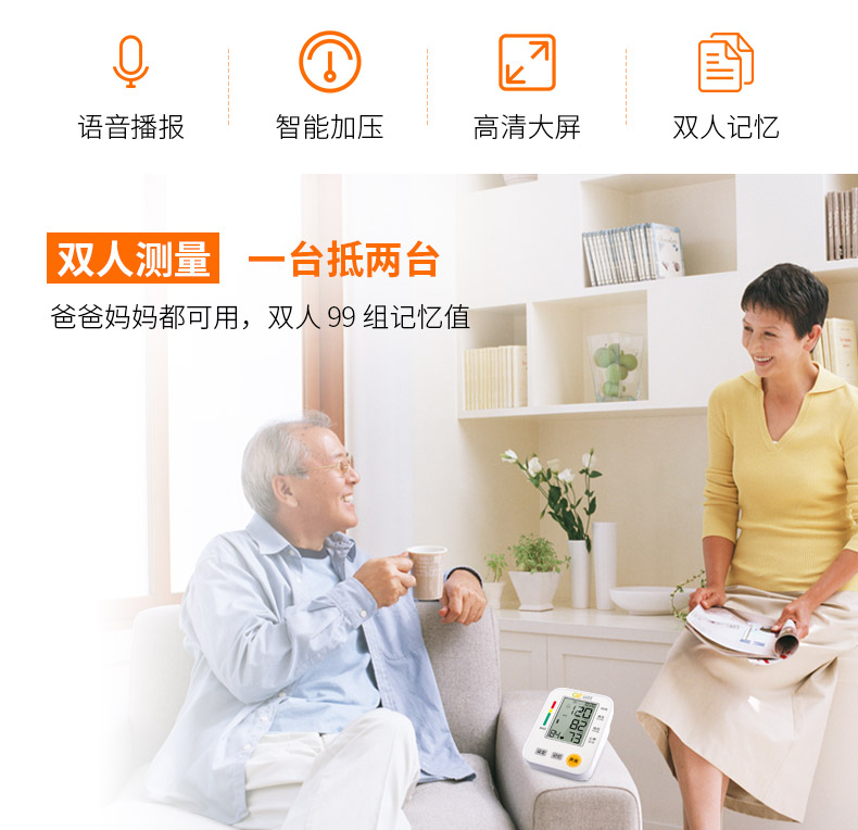 【送电池+体温计+收纳袋】药店同款,支持2个用户同时使用,一键测量血压/心率,高清大屏读取方便,双用户数据,99组记忆储存,全程语音,专为爸妈设计,家庭必备的家用医疗器械【赠运费险】