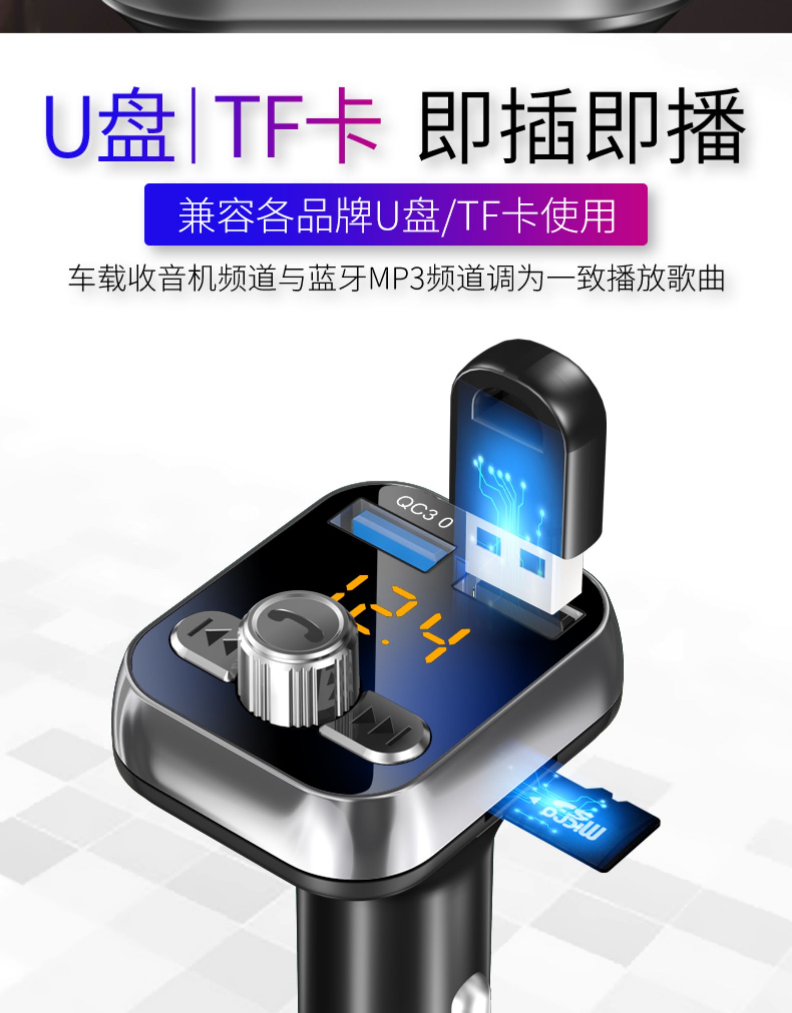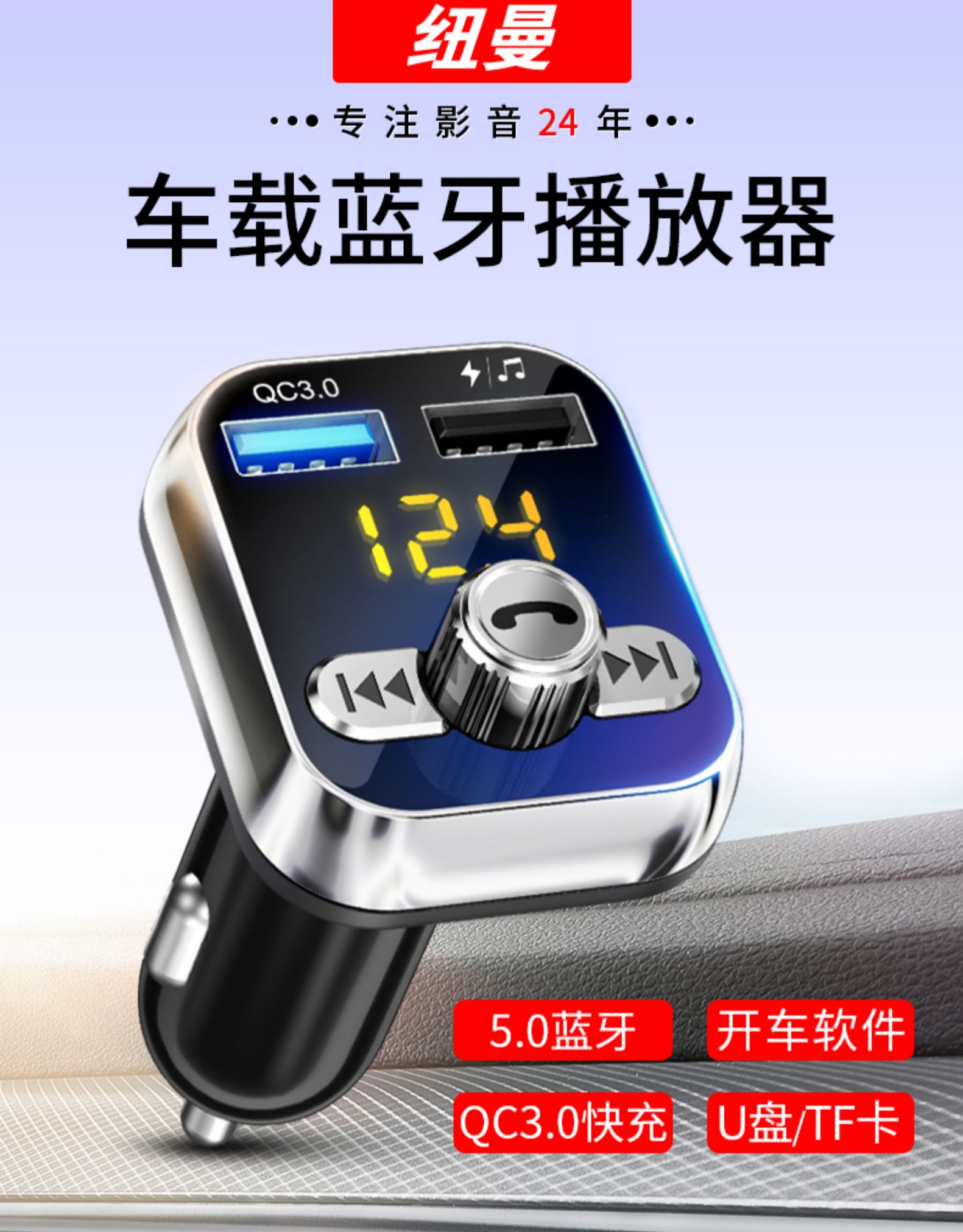 纽曼车载MP3播放器蓝牙接收器车音响音乐U盘汽车通用点烟器USB
