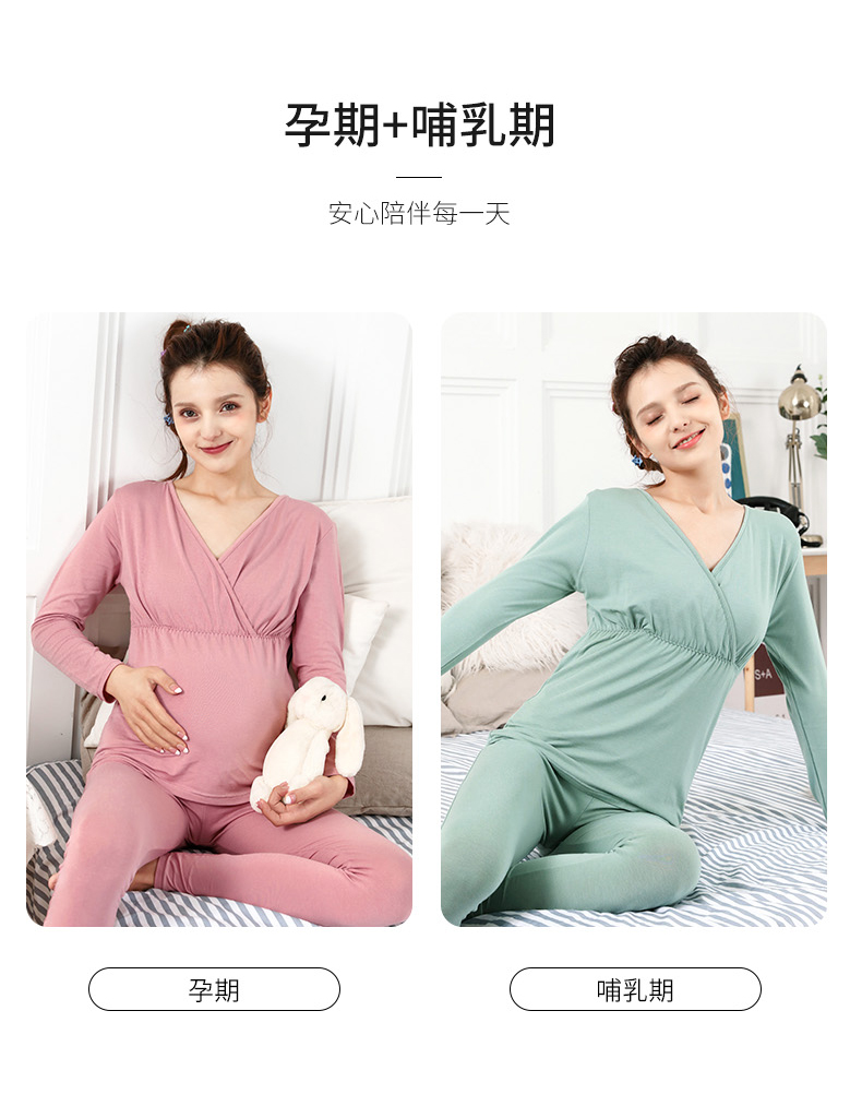 孕妇秋衣秋裤套装哺乳睡衣秋衣套装孕妇保暖衣纯棉哺乳秋冬月子服