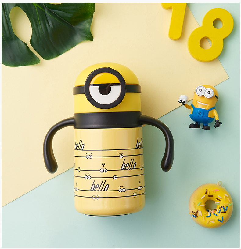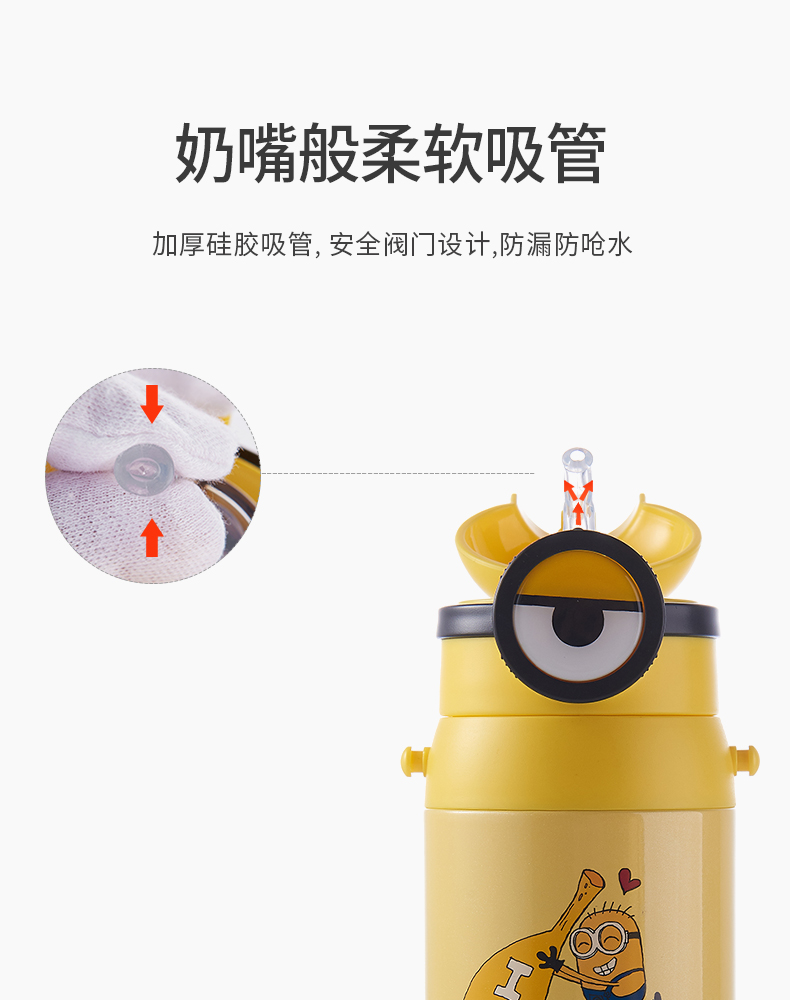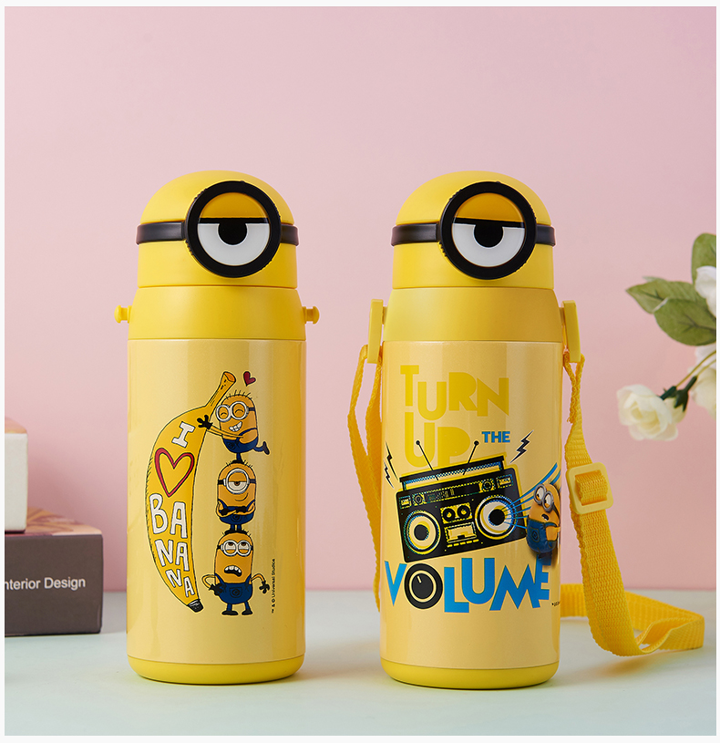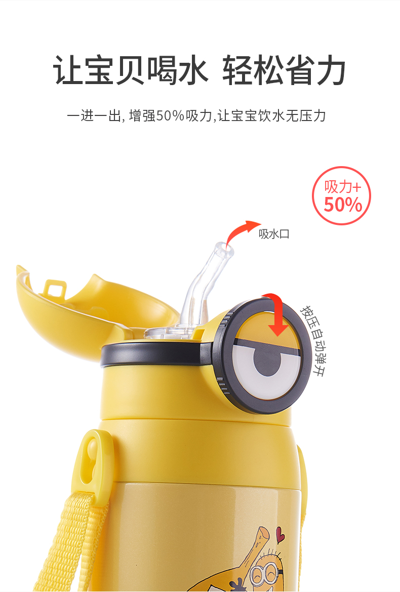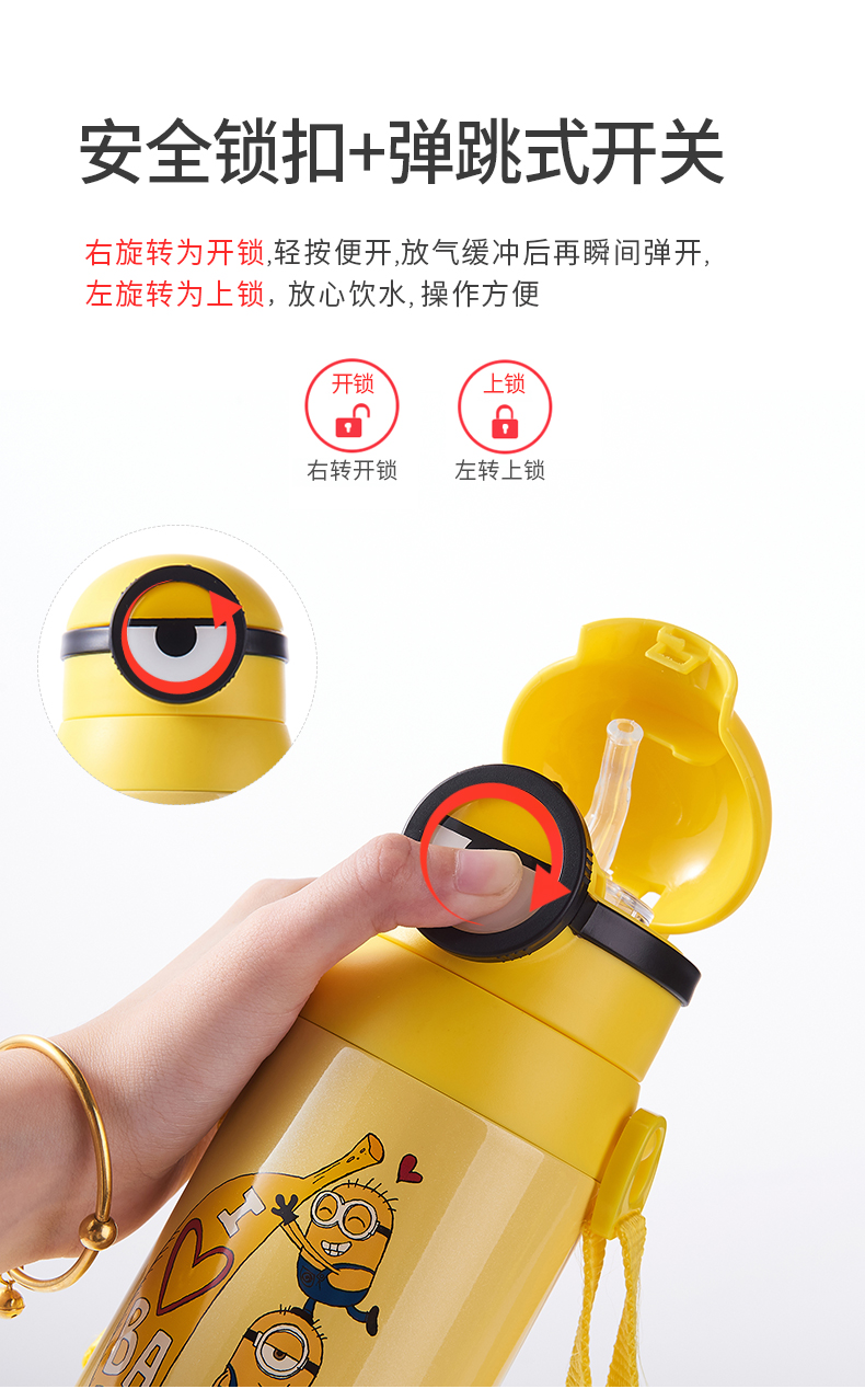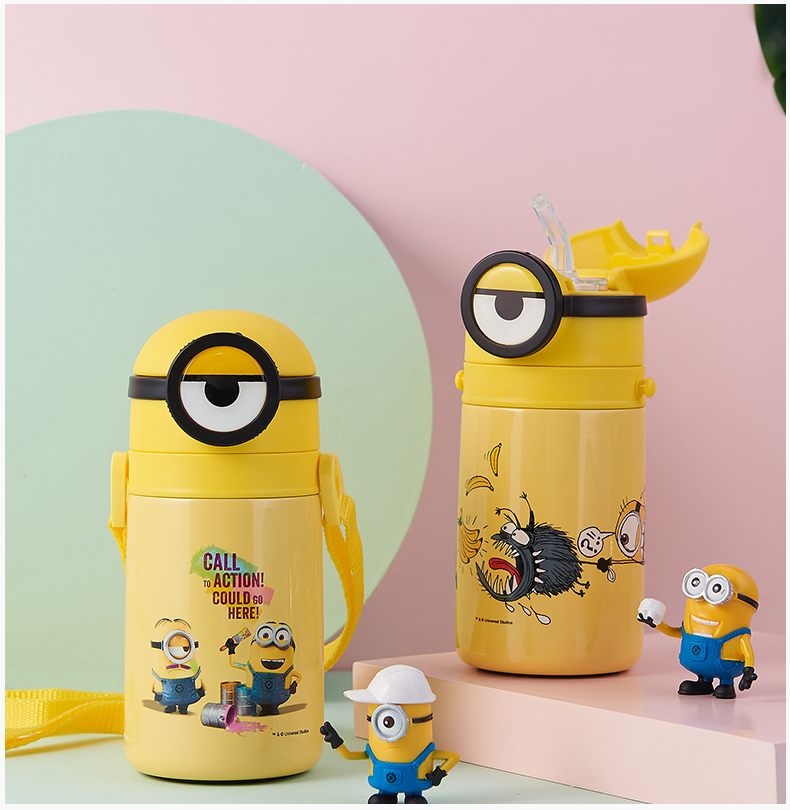 医用级316材质,Tritan内盖,小黄人萌酷设计,防呛设计,专用水壶背带,易握手柄,童真色彩,一见倾心,翻盖设计,防尘防漏,多色可选,让宝宝爱上喝水【赠运费险】