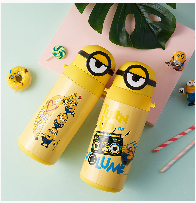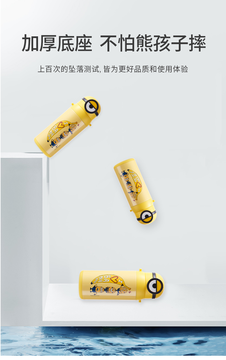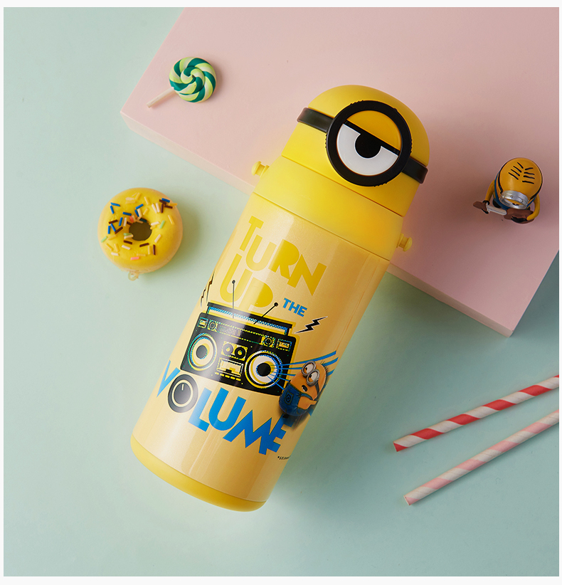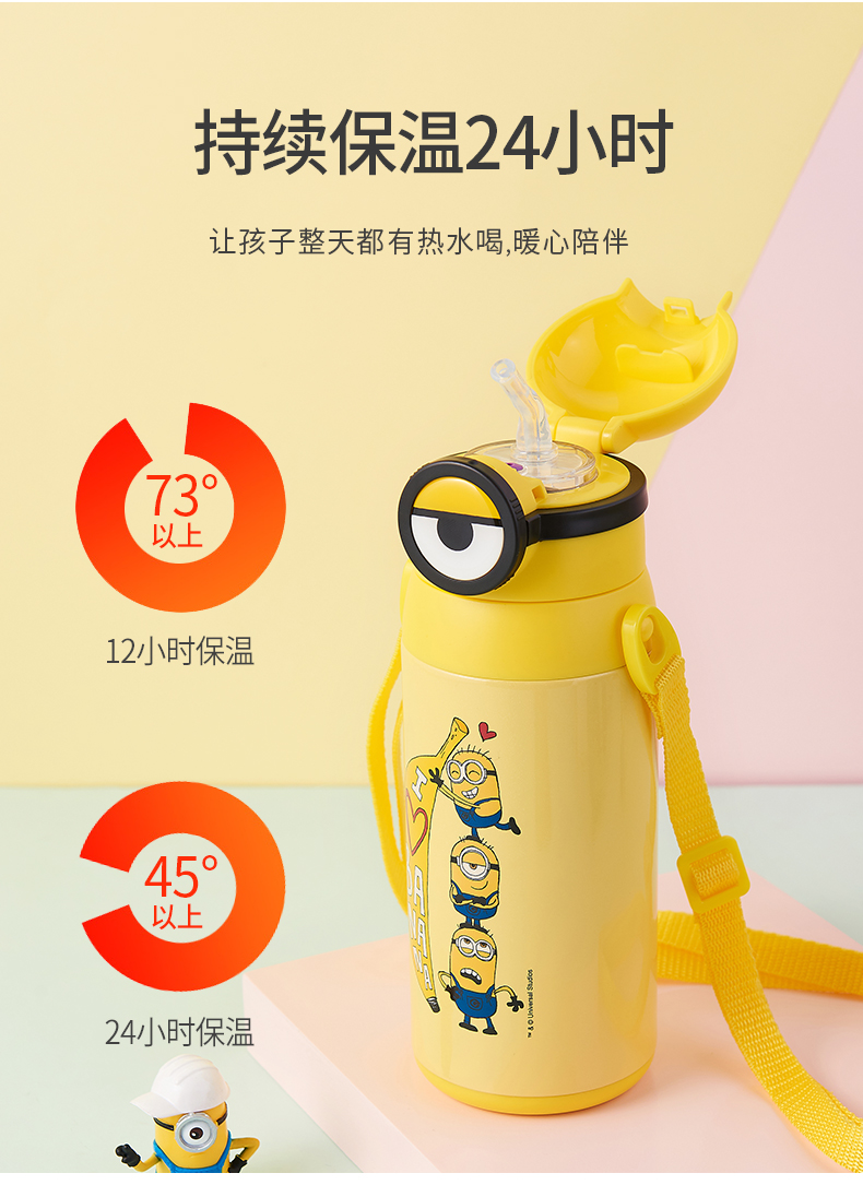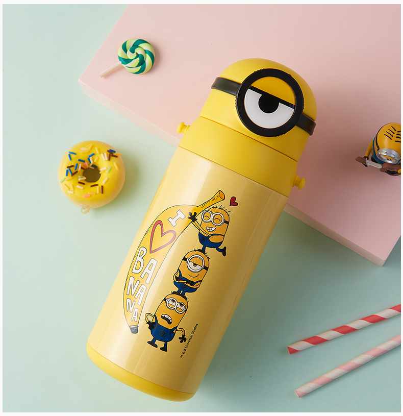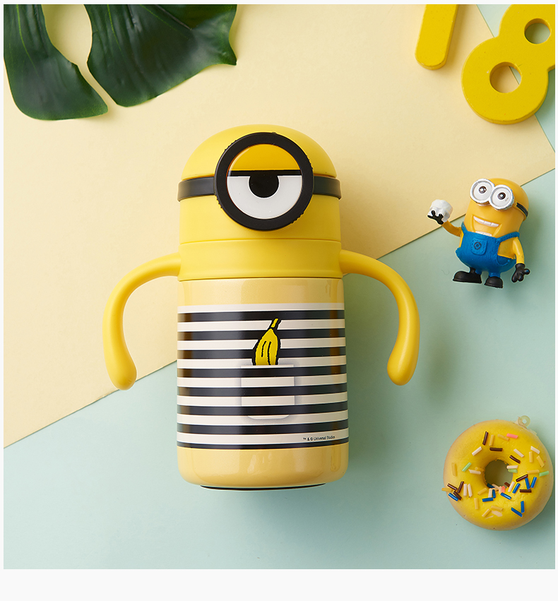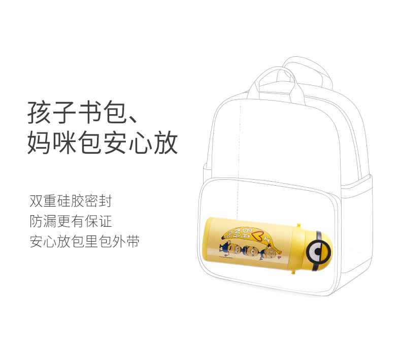 医用级316材质,Tritan内盖,小黄人萌酷设计,防呛设计,专用水壶背带,易握手柄,童真色彩,一见倾心,翻盖设计,防尘防漏,多色可选,让宝宝爱上喝水【赠运费险】
