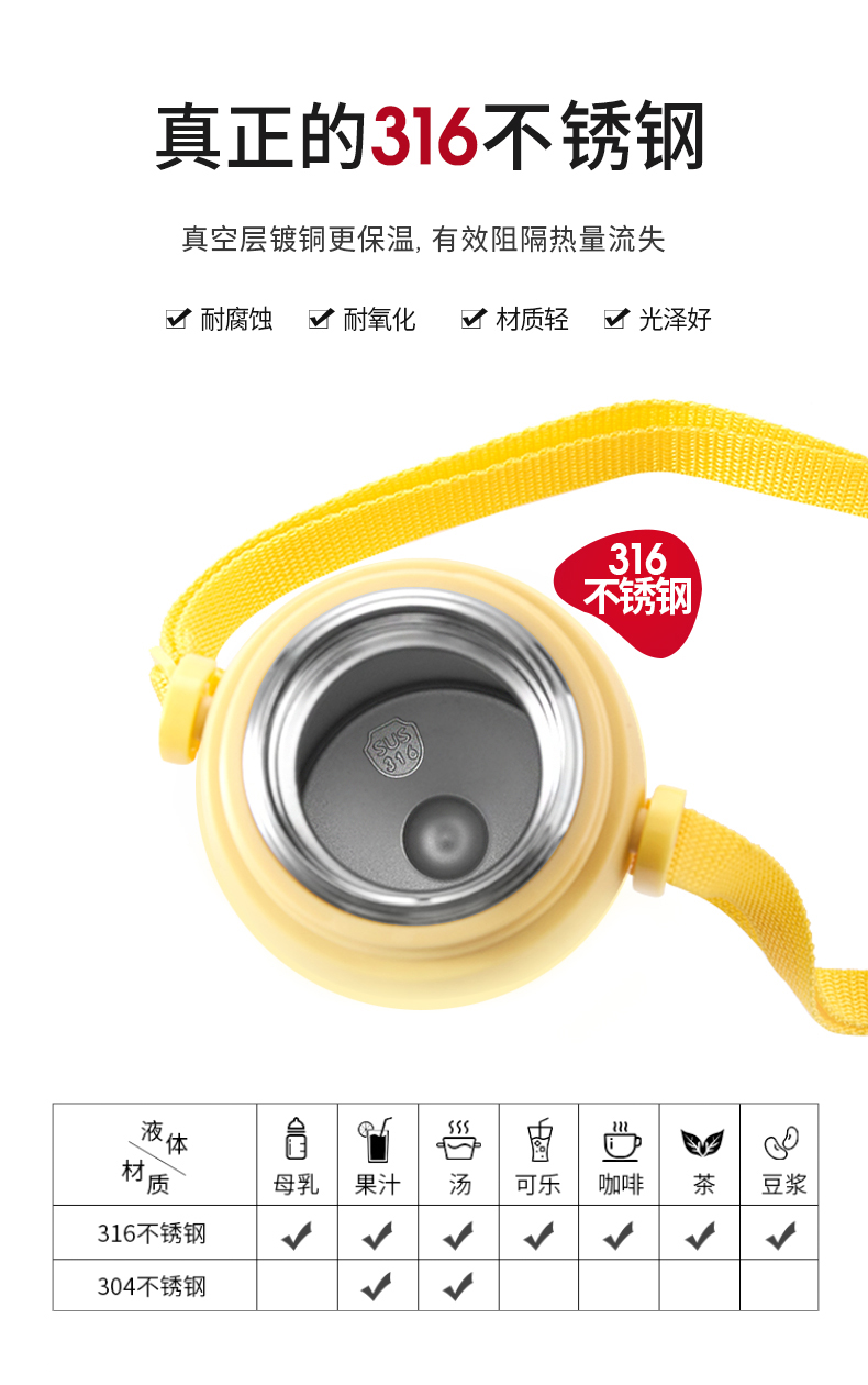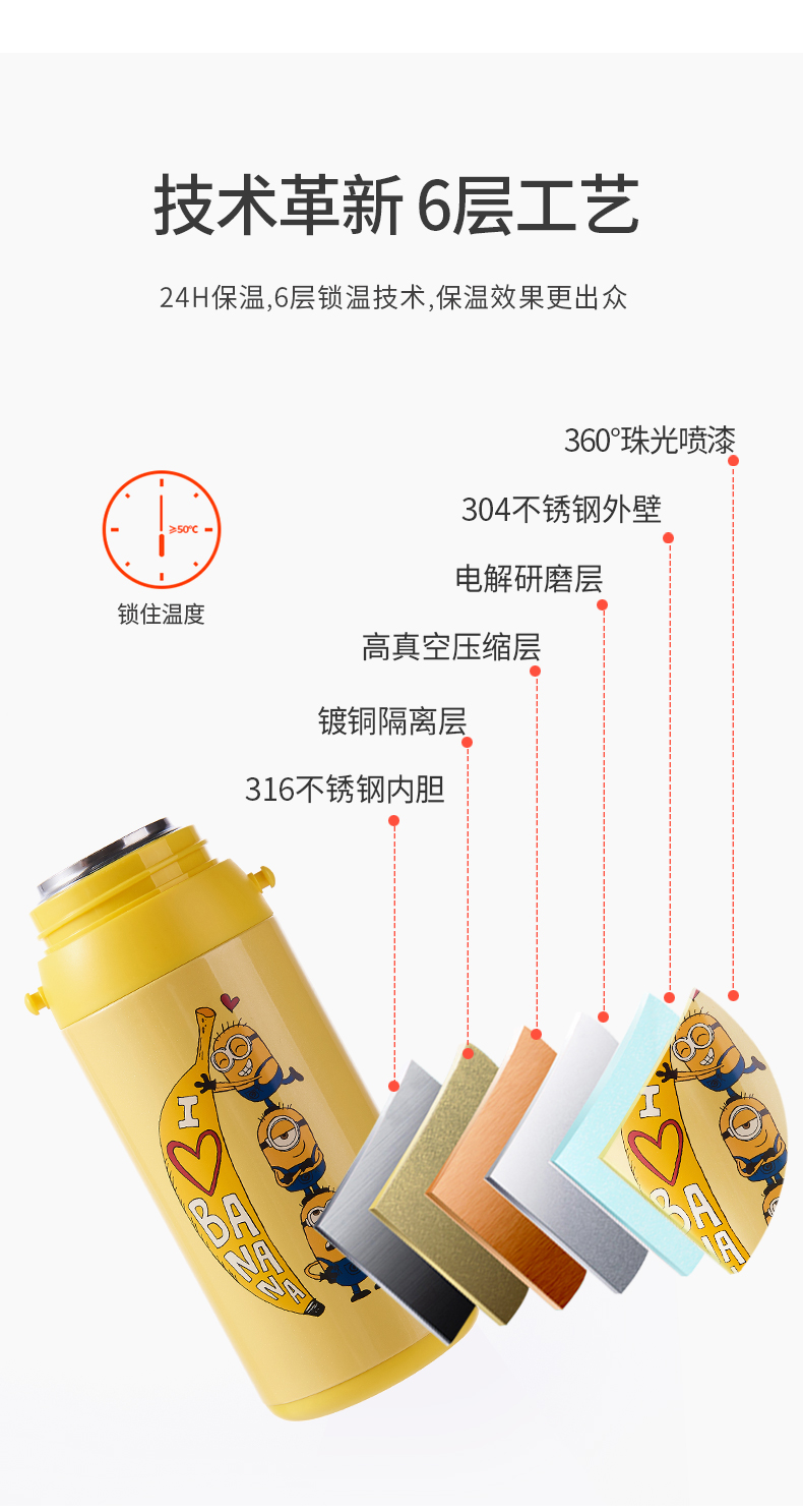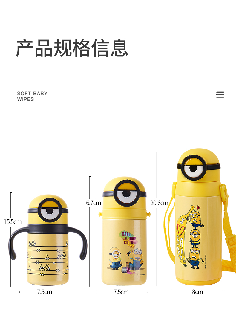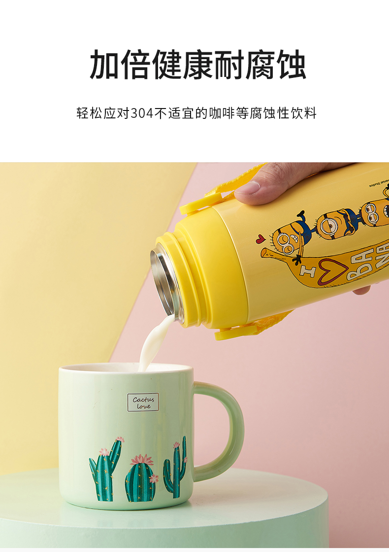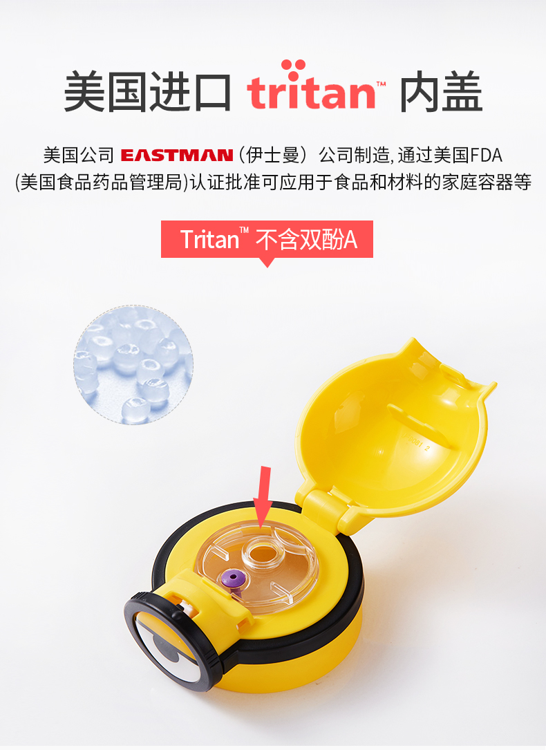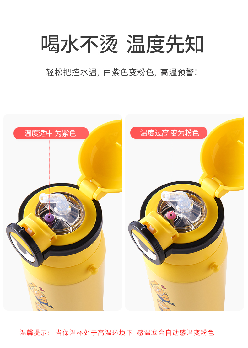 医用级316材质,Tritan内盖,小黄人萌酷设计,防呛设计,专用水壶背带,易握手柄,童真色彩,一见倾心,翻盖设计,防尘防漏,多色可选,让宝宝爱上喝水【赠运费险】