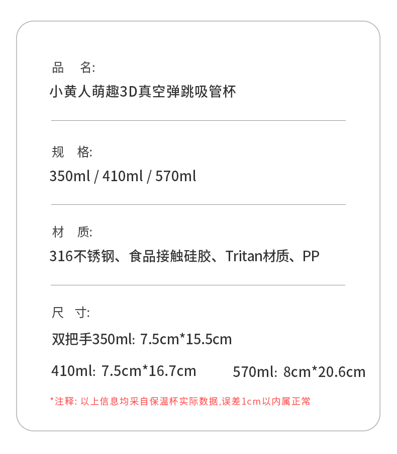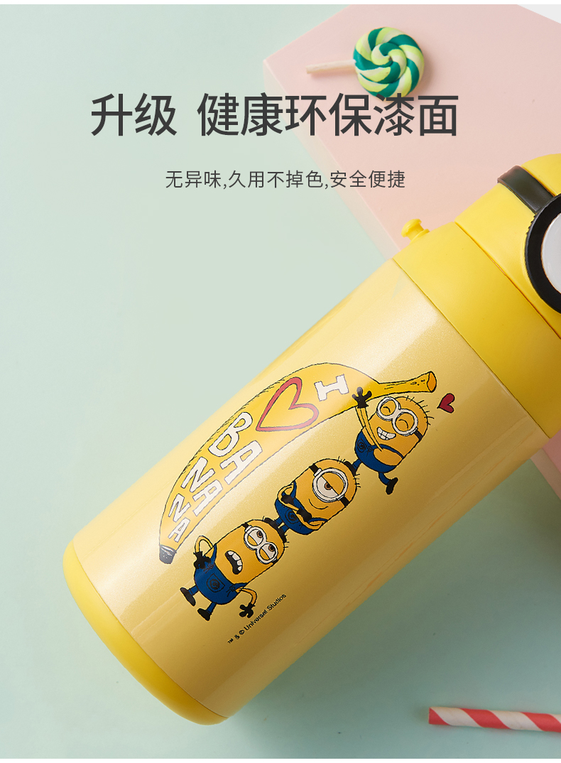 小黄人儿童保温杯带吸管316不锈钢防摔幼儿园水壶小学生便携水杯