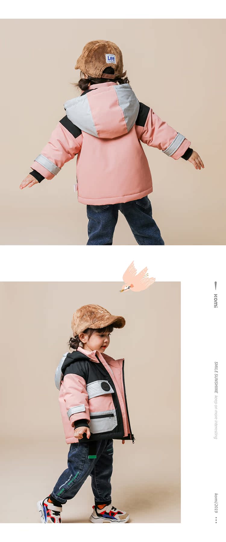 komi童装儿童加厚羽绒服,2019冬装新款宝宝工装连帽加绒外套潮,暖冬钜惠,儿童加厚工装羽绒服,90白鸭绒蓬松无异味,男女宝宝都可以穿哦,卷后只要159元。