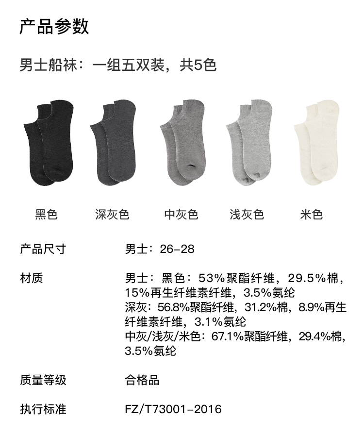 男士船袜五双装