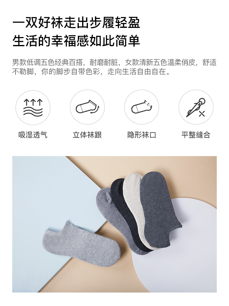 【5双装】淘宝心选船袜吸汗透气低帮,柔软舒适,吸湿透气,不臭脚,舒适弹力袜口,不掉跟,潮流百搭,四季可穿。【赠运费险】