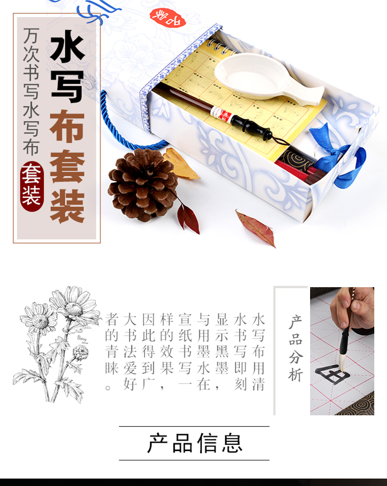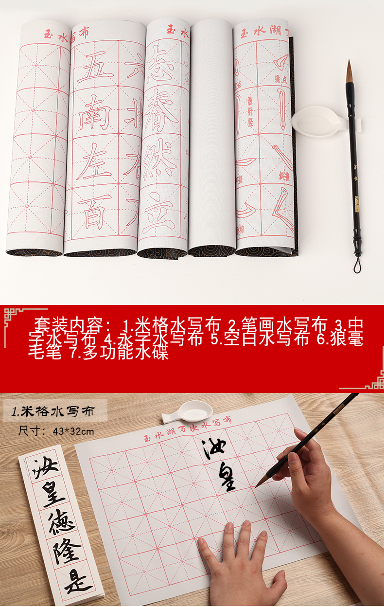 毛笔字帖水写布套装 水写书法布 玉水湖笔初学者入门楷书成人儿童小学生练毛笔字水洗布仿宣纸加厚速干学生