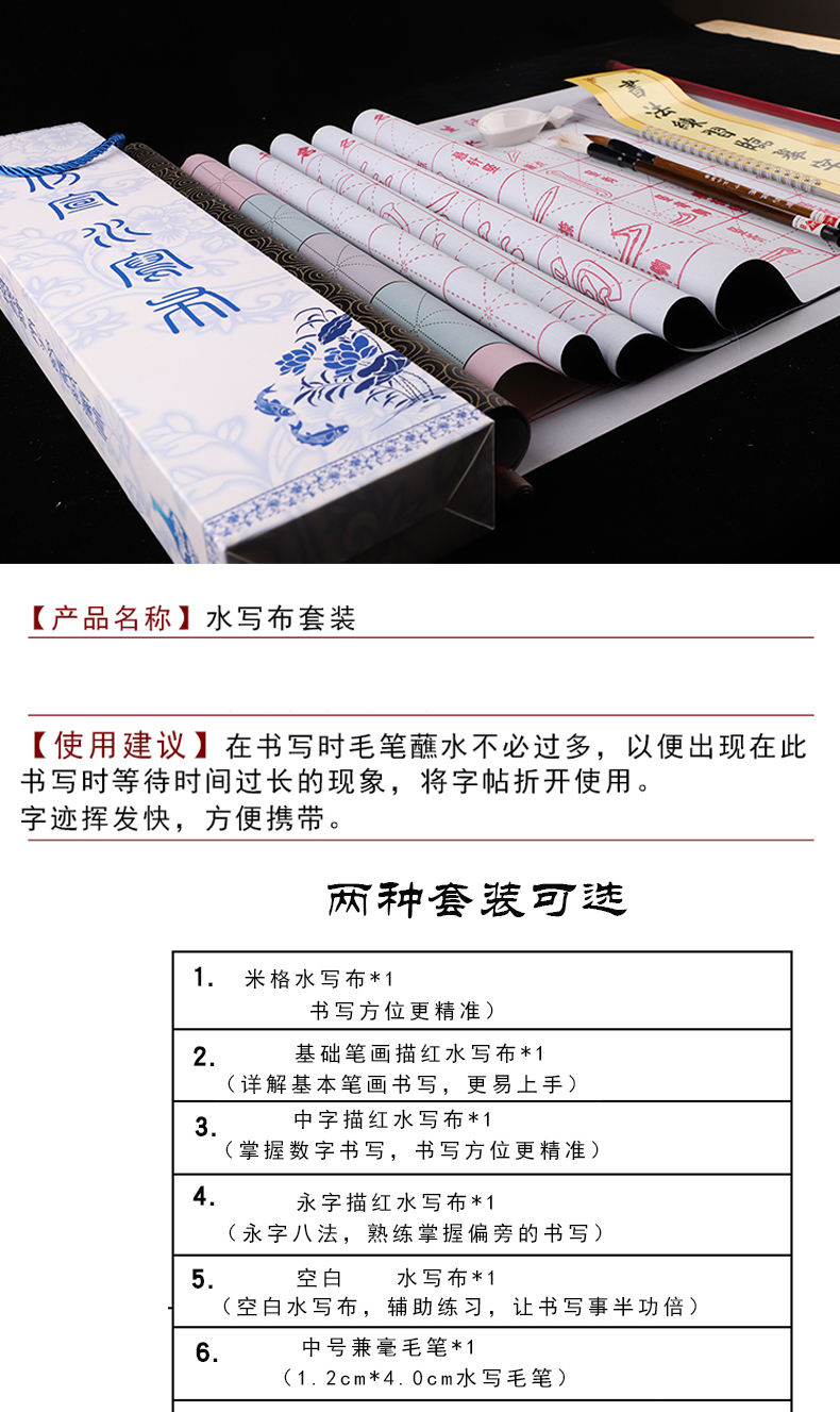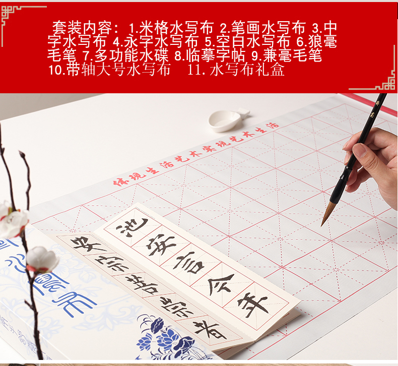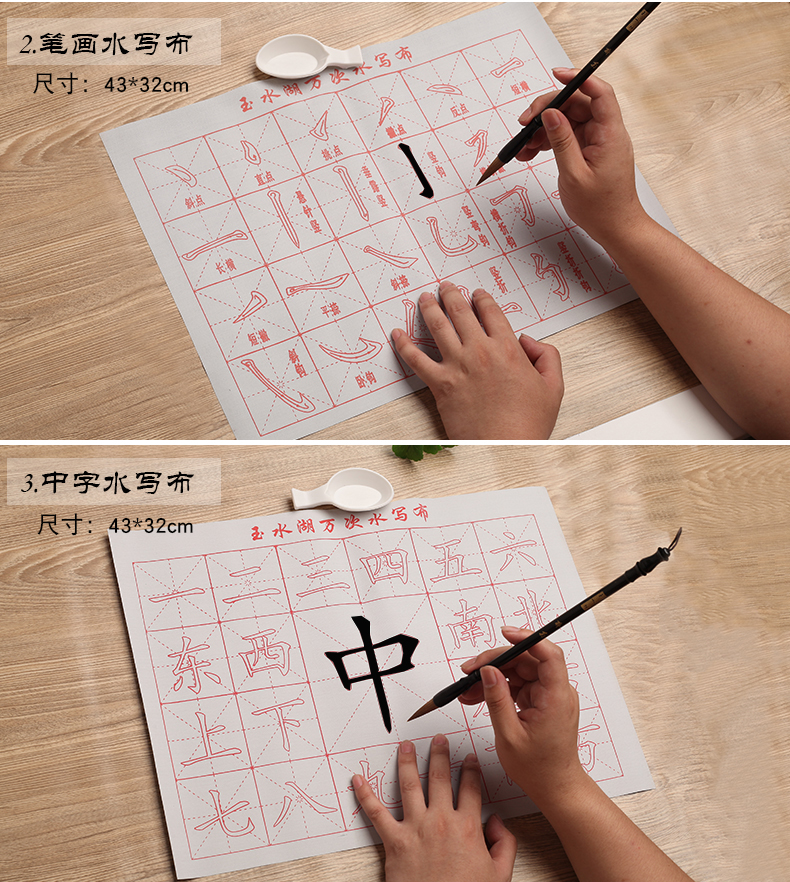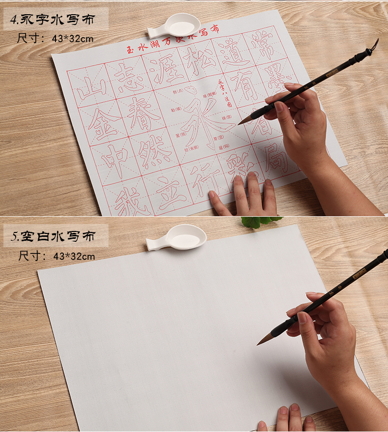 水写布套装,练毛笔字帖,初学者成人书法楷书入门,水写字帖、毛笔和水碟,可以反复使用,经济实用,书写如宣纸,多款字帖可选【赠送运费险】