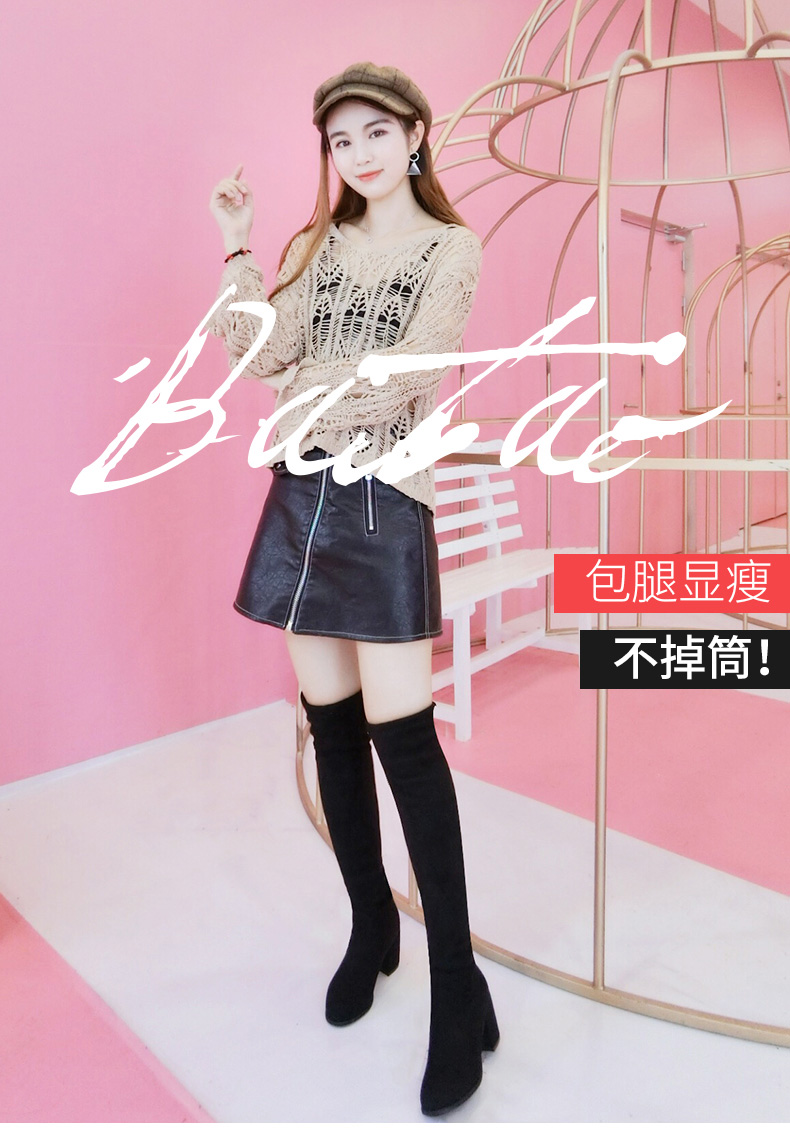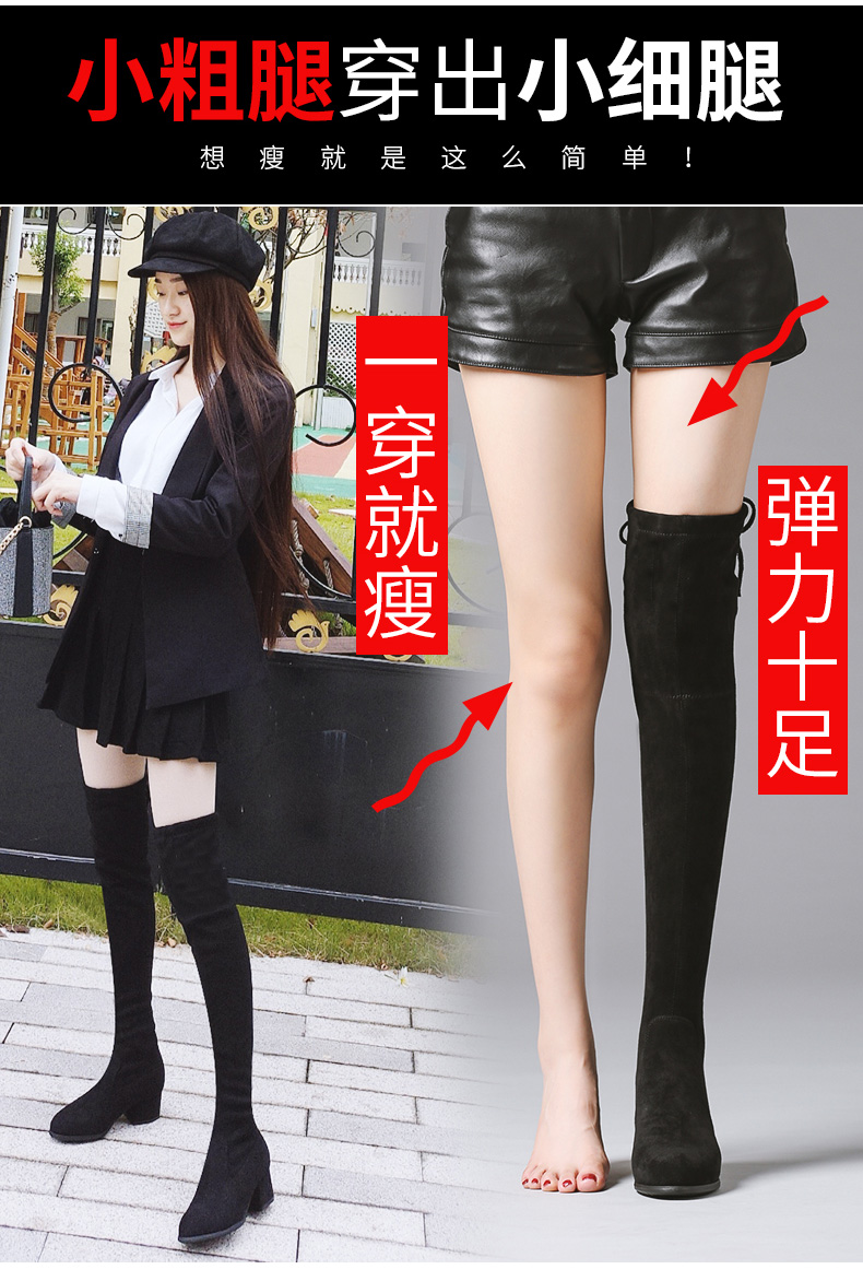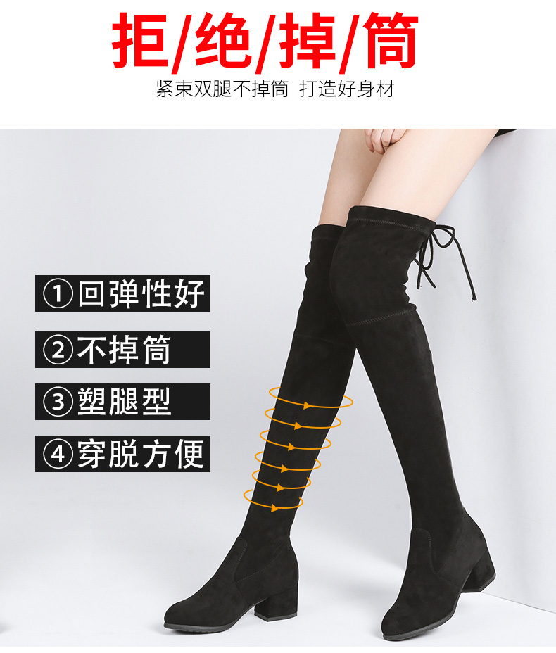 长靴女过膝2019新款秋冬季粗跟高跟弹力布高筒靴网红秋款长筒靴子