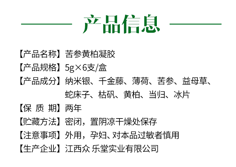 众乐康健苦参黄柏凝胶,专注女性私处护理,专业药企出品,主要成分纳米银,苦参。薄荷,黄柏,紧致如初,呵护私处,做无炎女人!【赠运费险