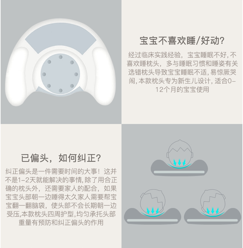 新生儿小宝宝防偏头0-1岁矫正、纠正、偏头型,四季透气,内胆可拆洗设计,透气舒爽,无拉头拉链,安全无隐患,不添加荧光剂,四季通用,预防改善偏头尖头,纠正睡姿,保护颈椎,给宝宝一个完美的头型!