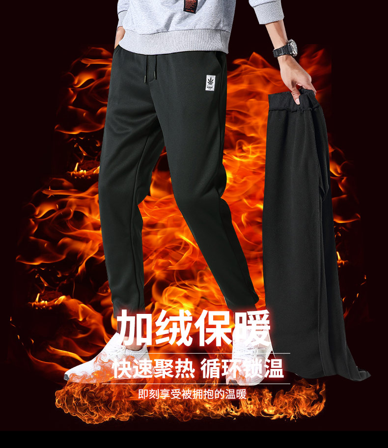 裤子男秋冬加绒休闲裤加厚束脚裤女大码男摇粒绒裤小脚运动裤潮男