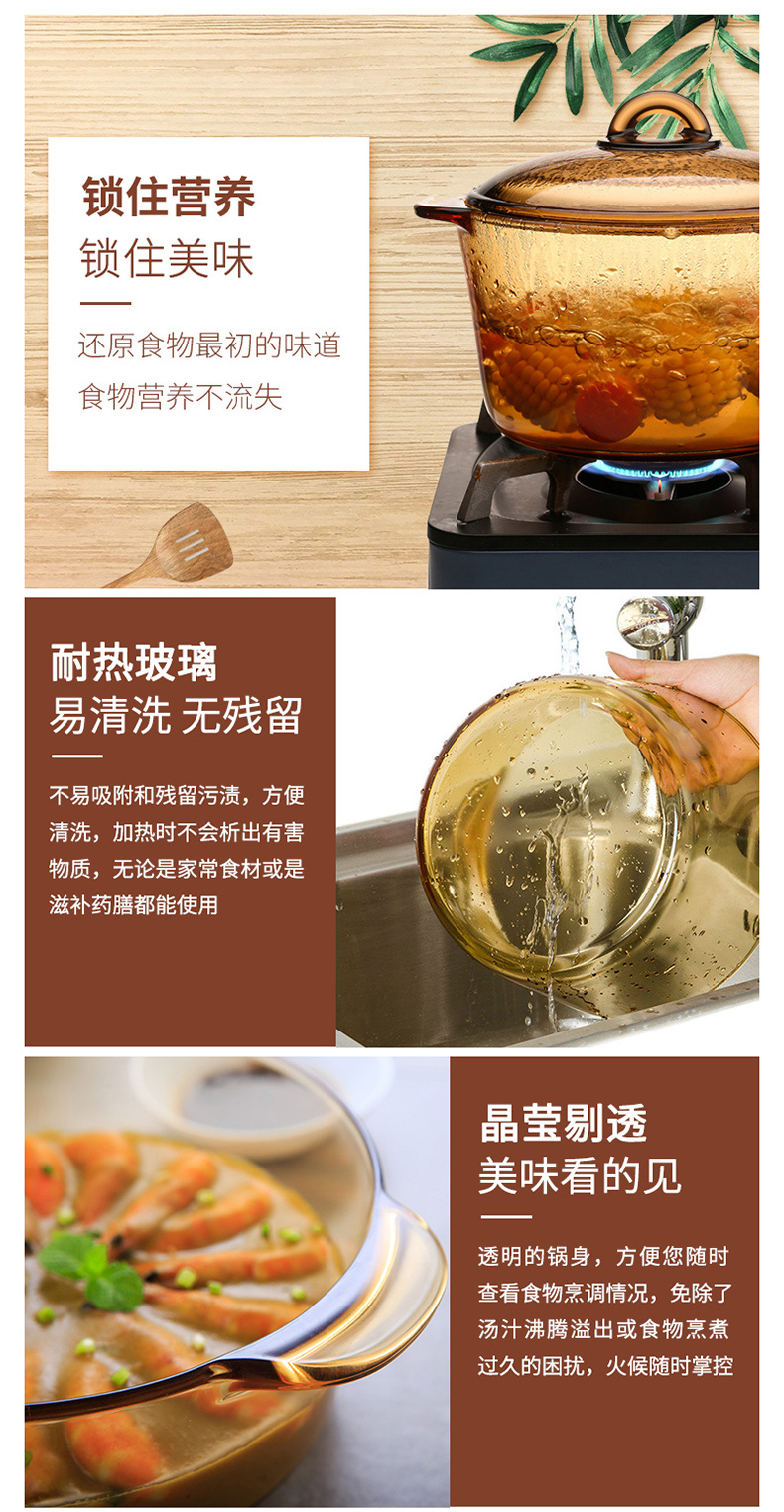 乐美雅玻璃锅耐高温透明锅家用炖锅煮锅汤锅奶锅琥珀锅宝宝辅食锅