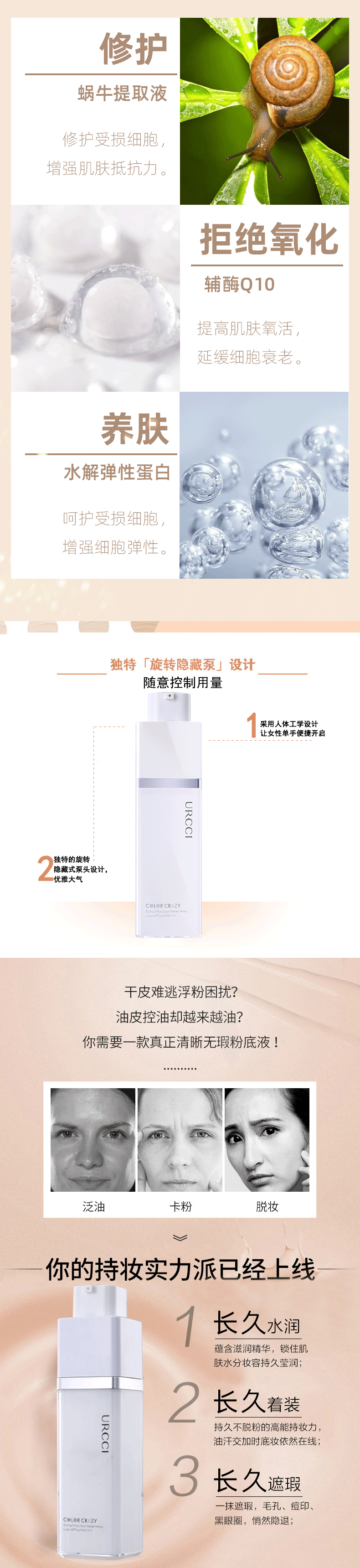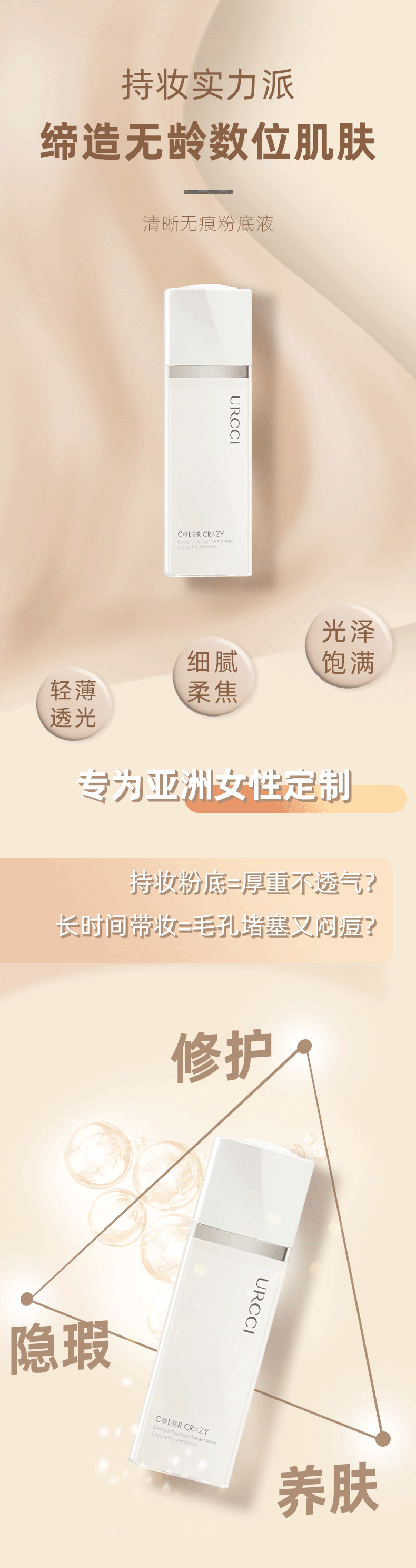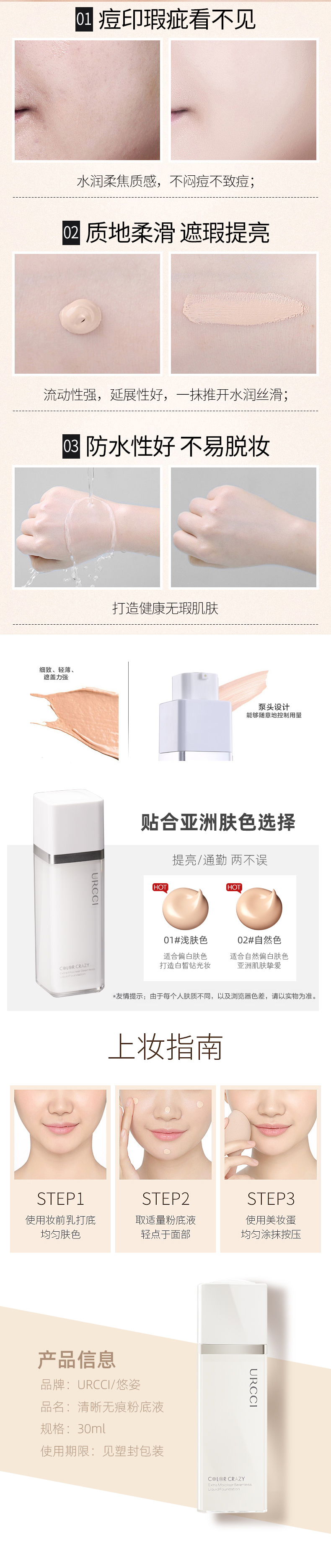 时尚简约的玻璃瓶设计,高端大气!符合多种肤质的不脱色粉底液,遮瑕+粉底二合一,强大保湿嫩白效果,水润透亮给你“素颜肌”,轻轻一抹,让你轻松变女神~~【赠运费险】