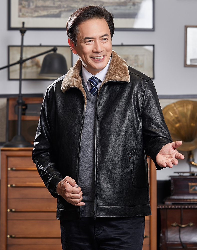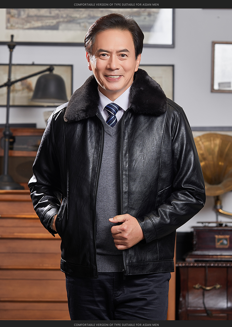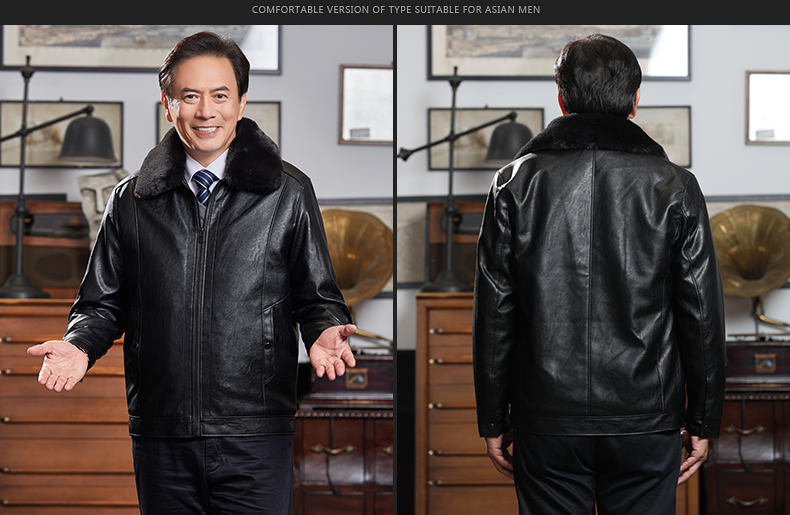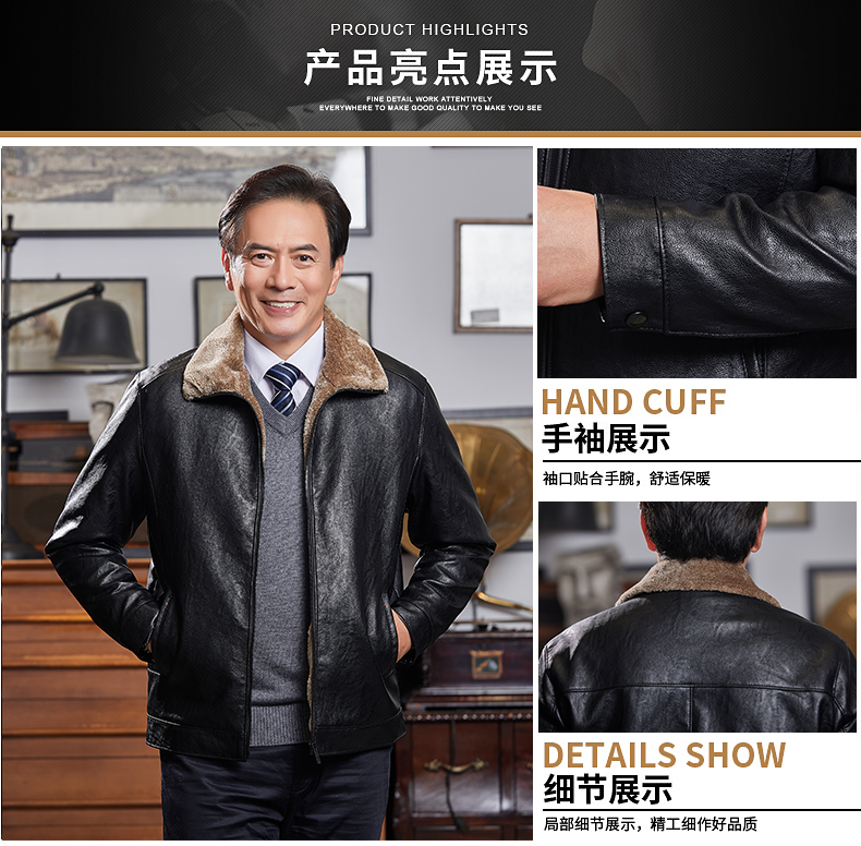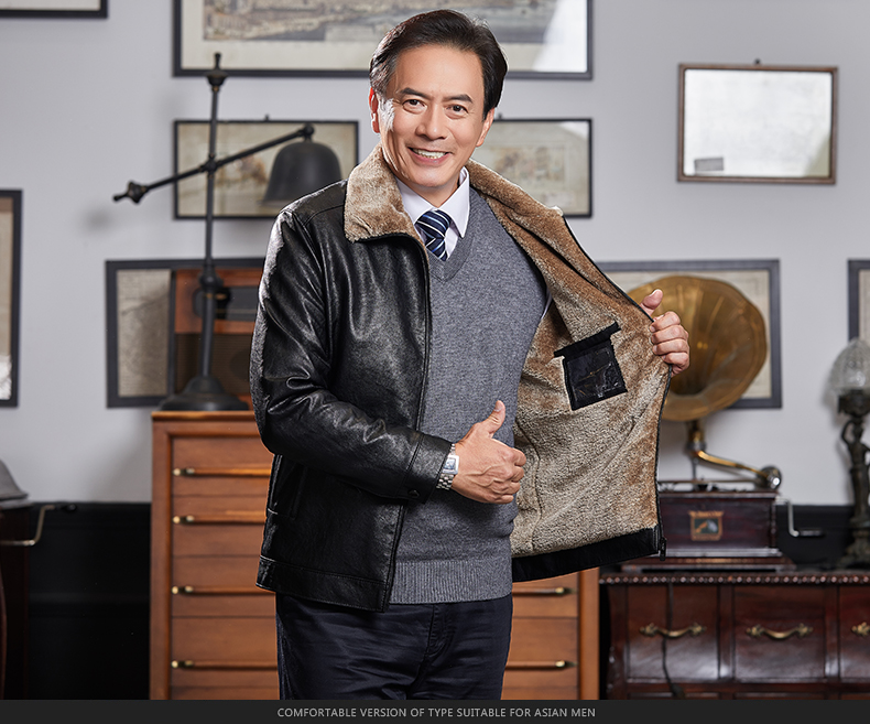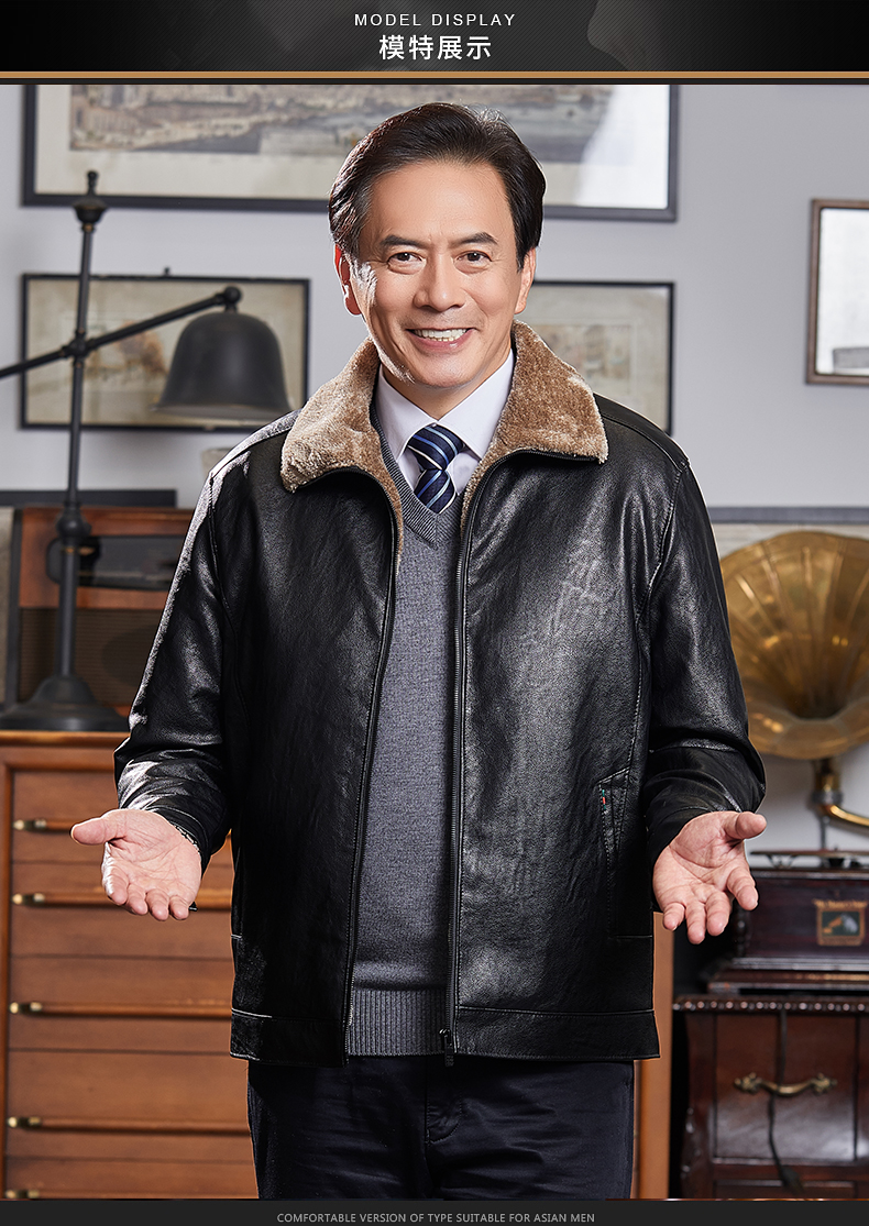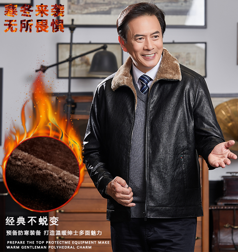 爸爸冬装外套中老年人加绒加厚款40皮衣50岁秋冬季中年男装皮夹克