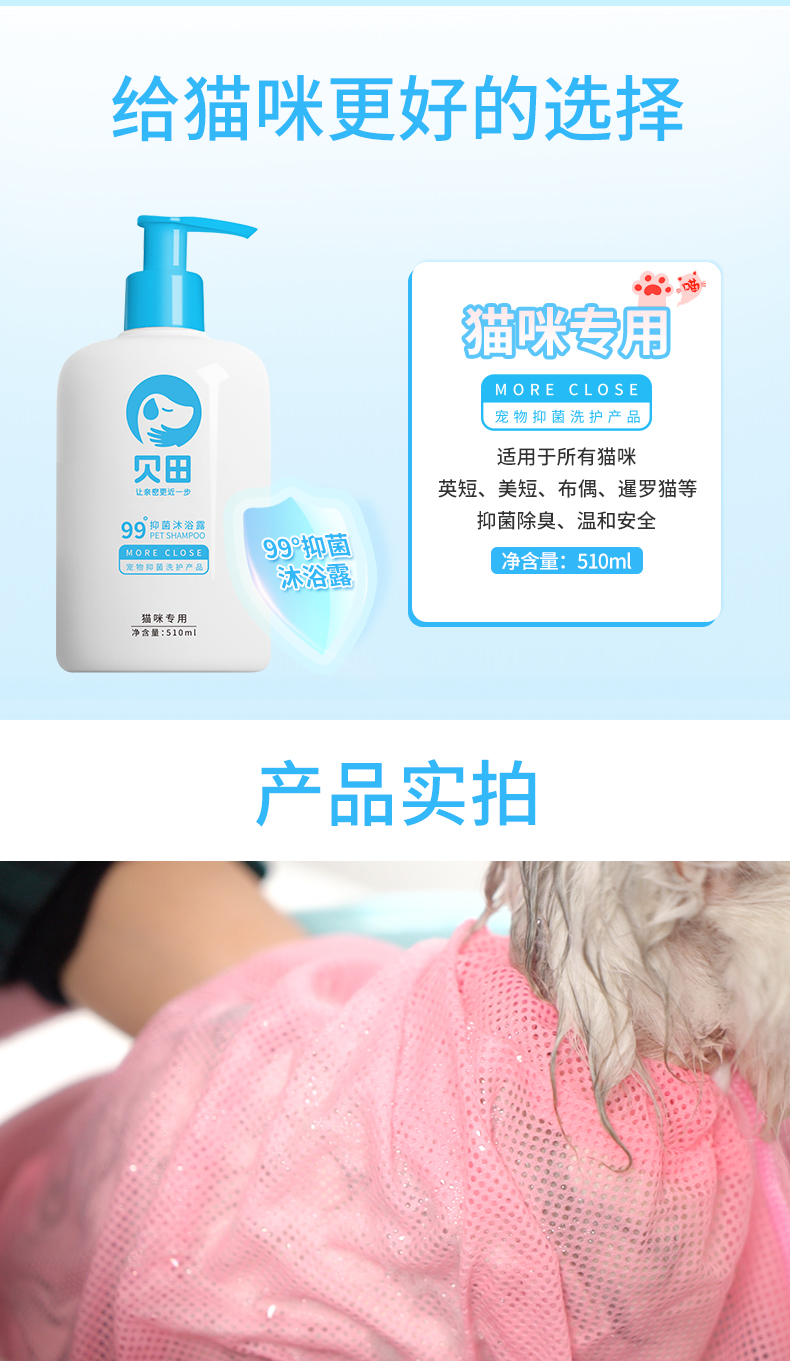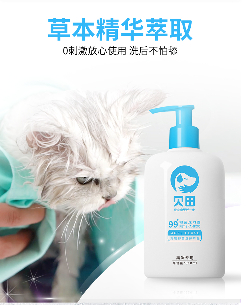 贝田猫咪沐浴露专用杀菌除臭,宠物香波浴液洗澡神器猫咪用品500ml,99.9%抑菌送洗澡刷,拍2瓶送(毛巾+护毛素)【赠运费险】