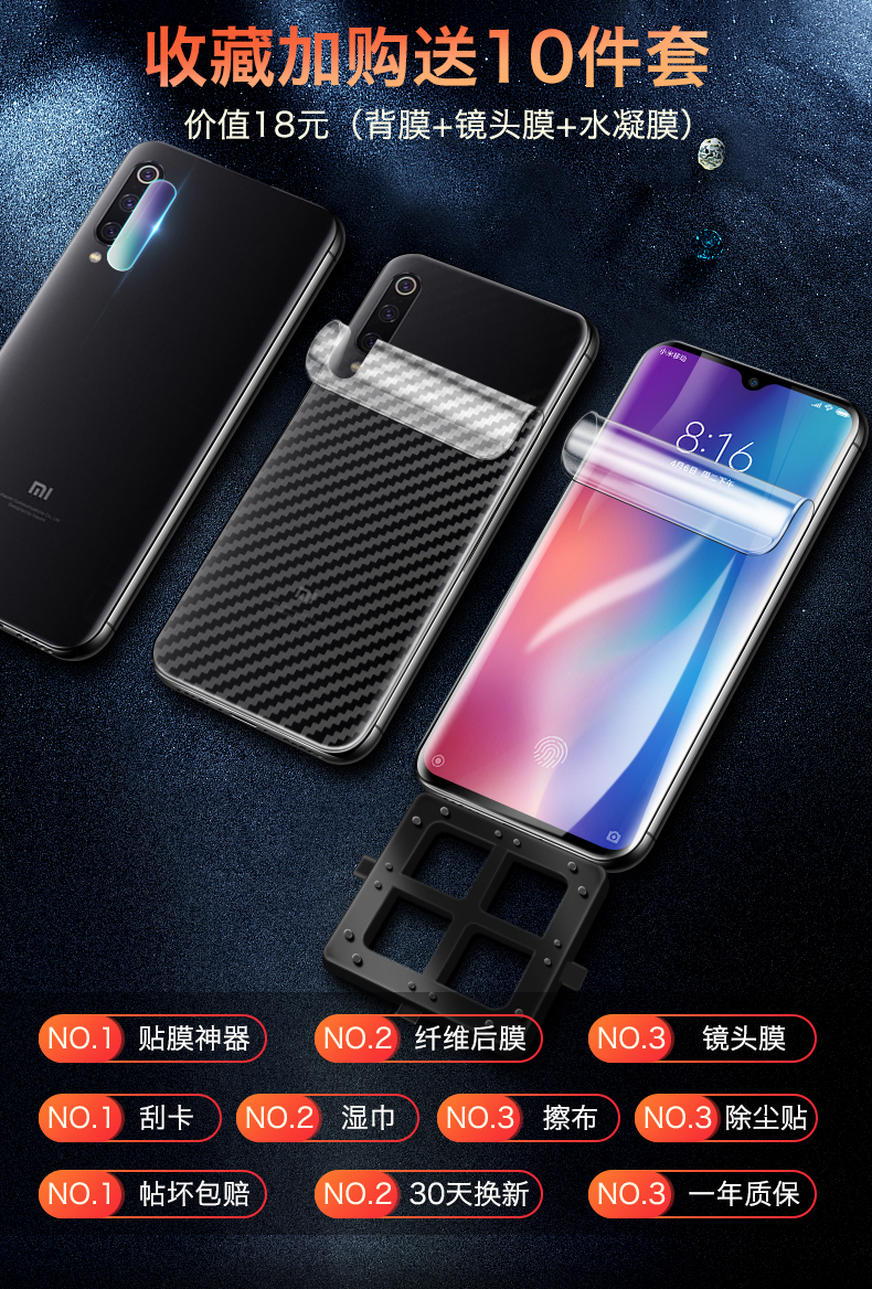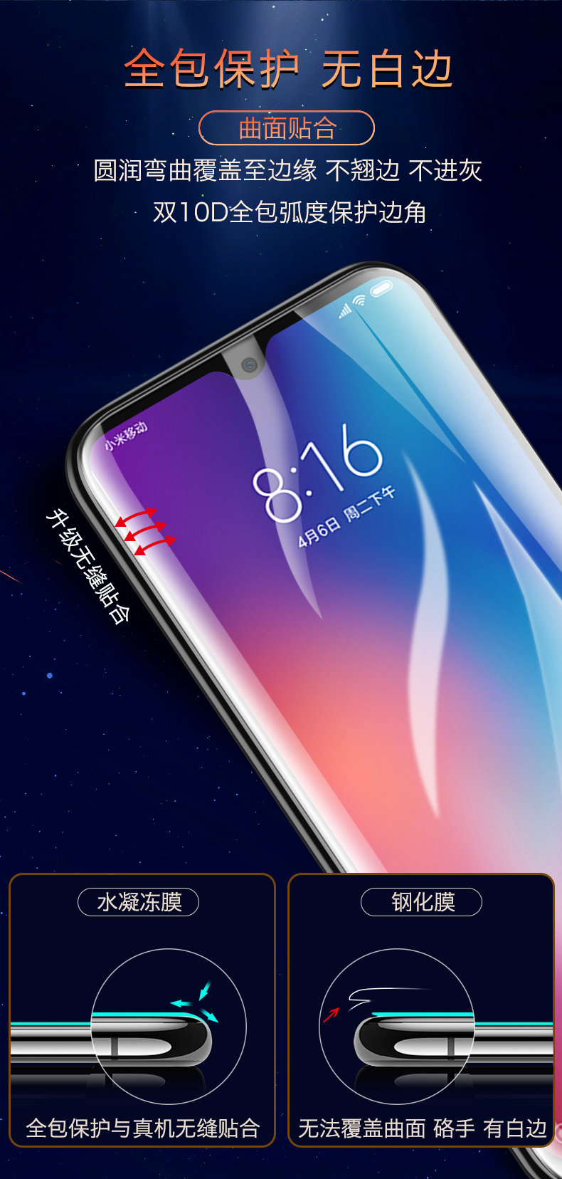 小米9pro水凝膜小米9se钢化膜小米CC9青春版手机膜米九手机小米9cc9pro全屏美图cc9e蓝光纳米水凝无白边贴膜