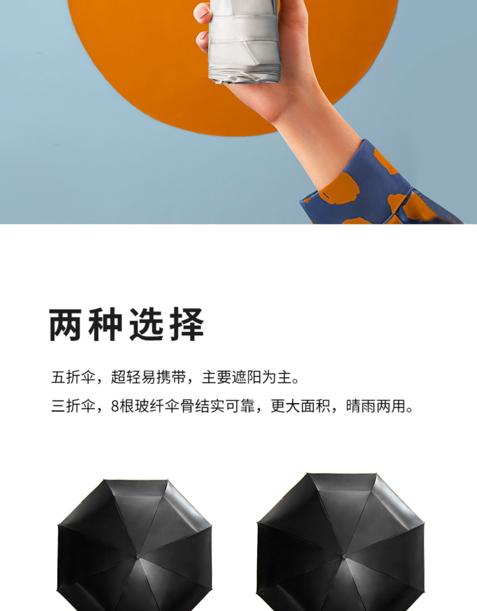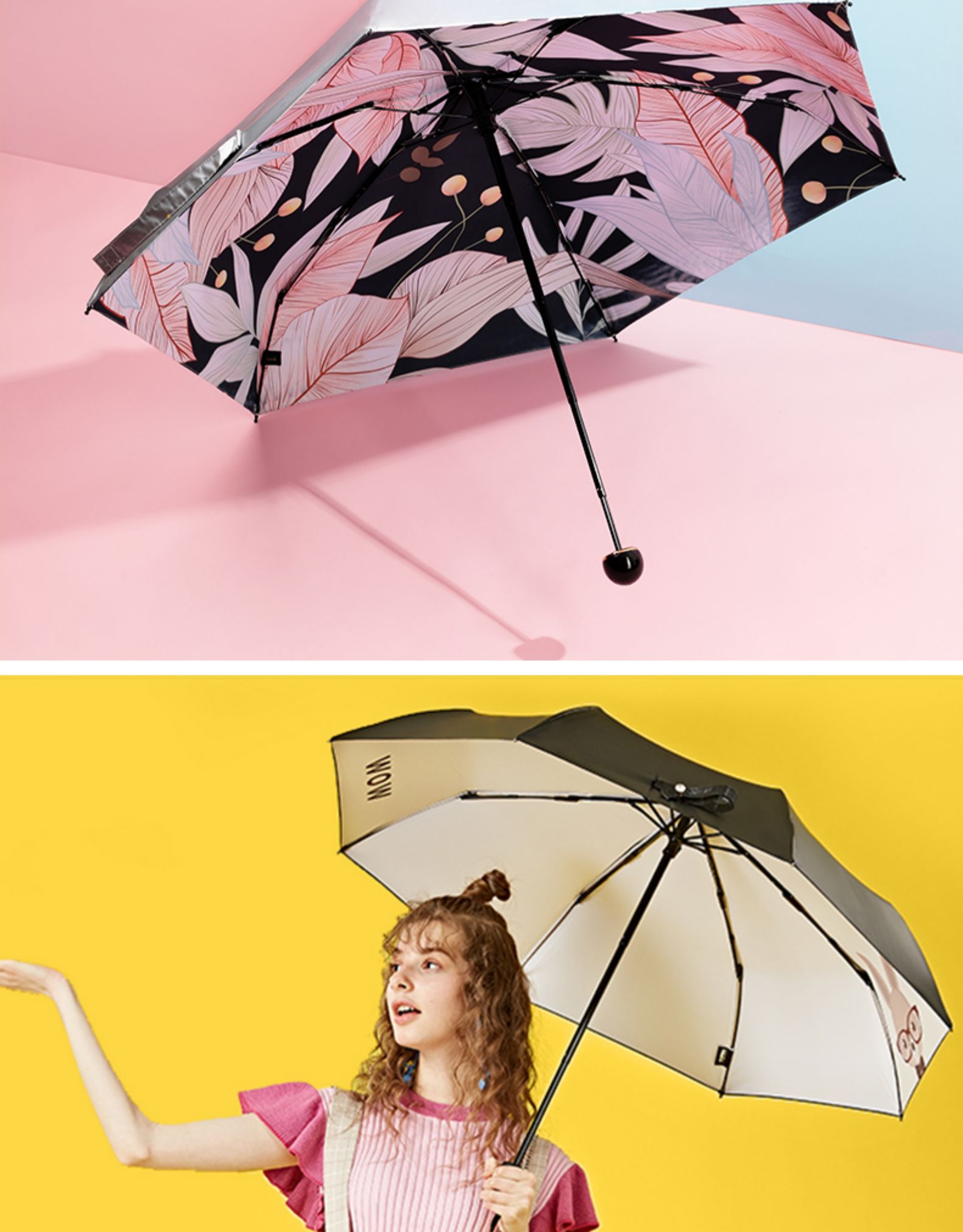 创意五折遮阳伞防紫外线太阳伞女轻小折叠晴雨伞两用防晒小黑伞女