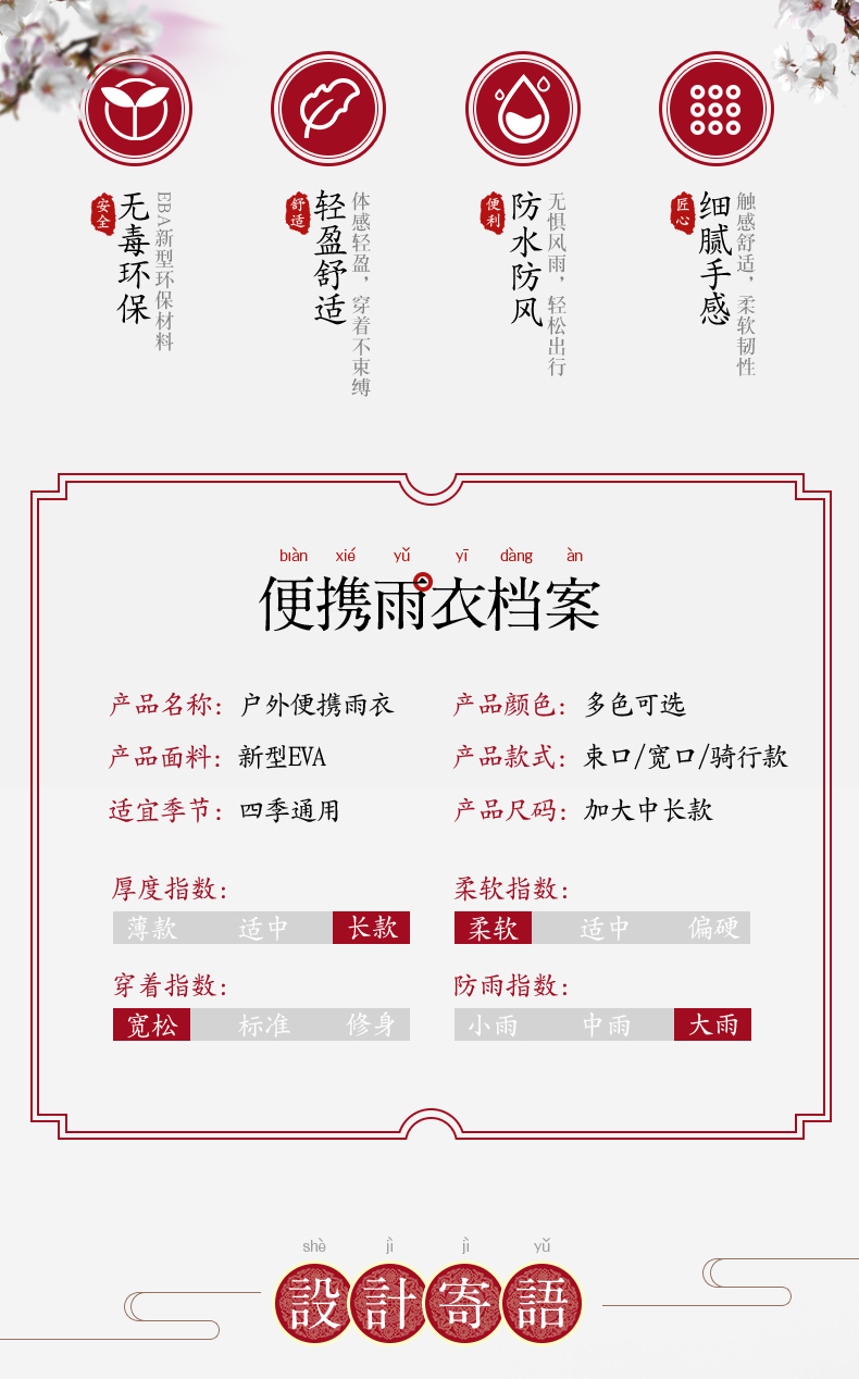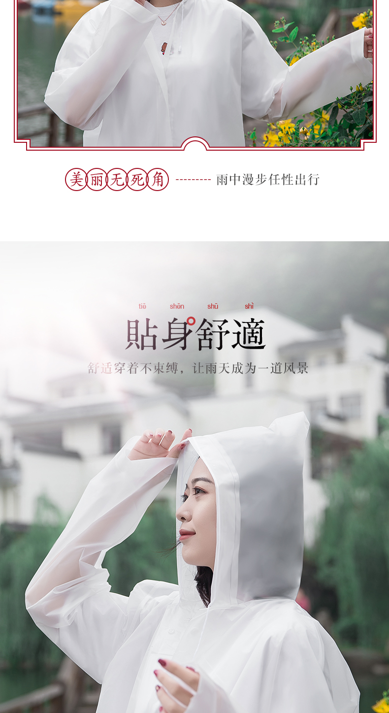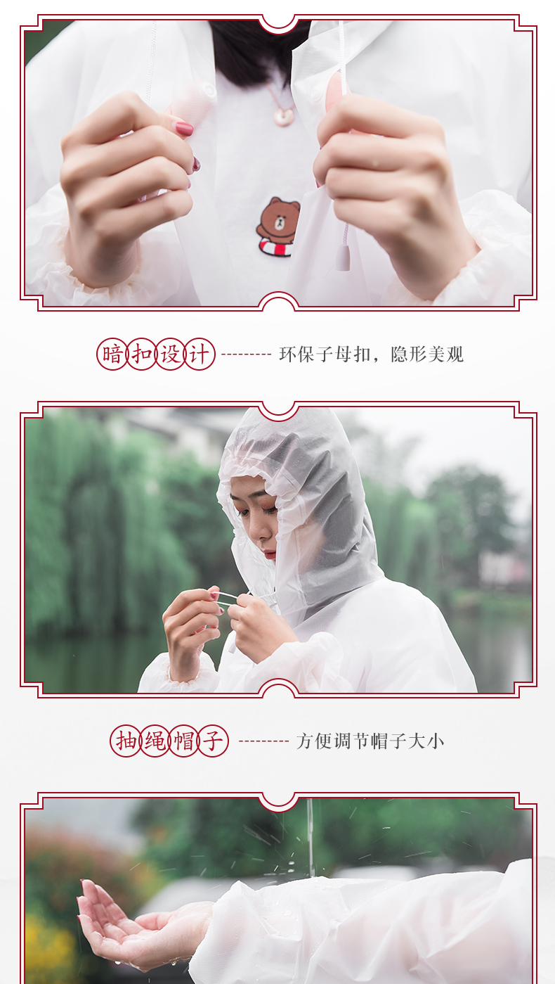 时尚加厚款男女通用,无限次使用,无毒EVA透明材质,柔韧轻薄耐用!全方位挡水挡风;透气不闷人,携带方便!