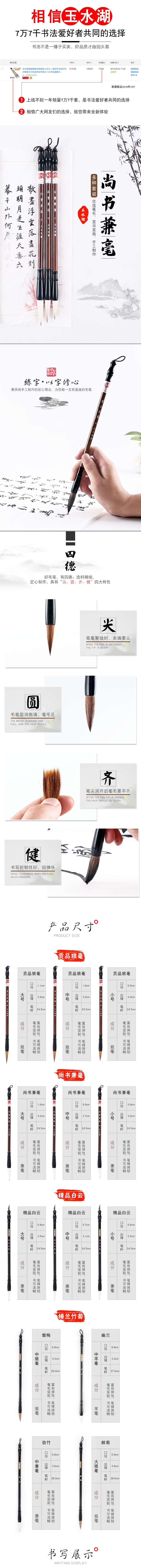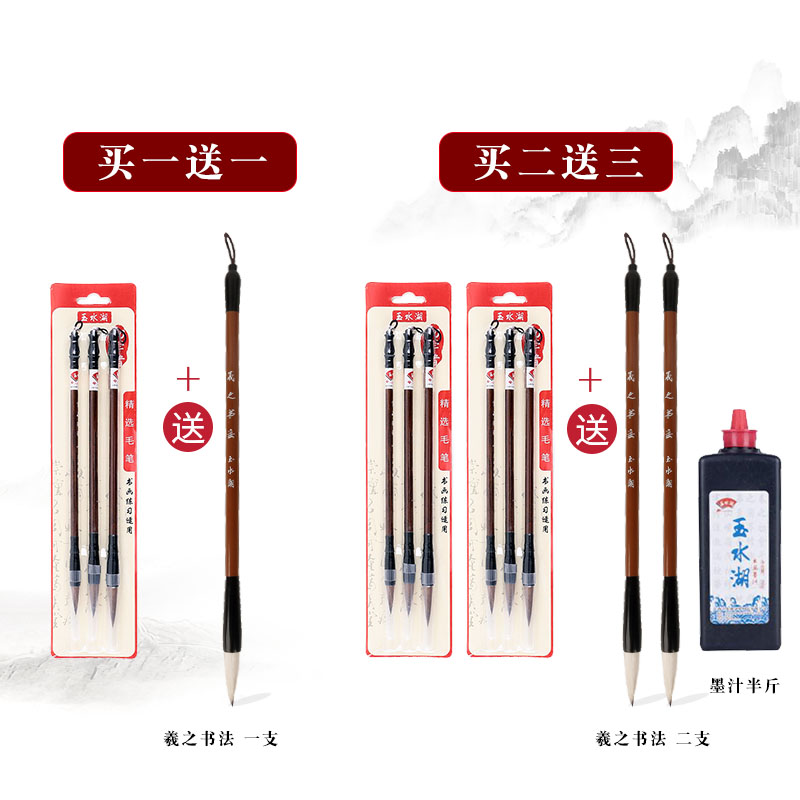【玉水湖】狼毫兼毫毛笔套装,大中小一套,初学书法中号中楷,楷书学生练字,初学者入门国画小白云兼豪善莲湖笔,现在只需花6.9元邮费,即可获得大中小3支毛笔,超划算!
