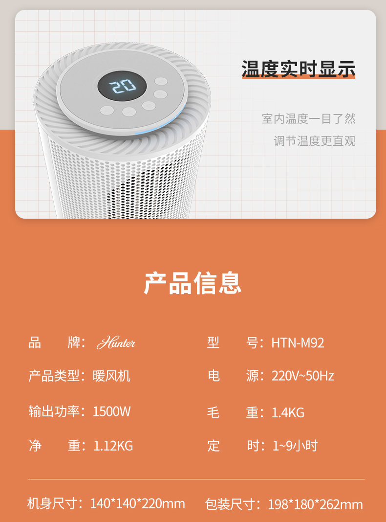 【亨特】美国亨特取暖器立卧两用,铁铬合金,熔点高,耐高温升温快,热效率高,双面进风。3秒速热,烘干小衣物贴心关爱,母婴适宜。小身体,大温暖,让它来温暖你的一冬吧!【赠运费险】