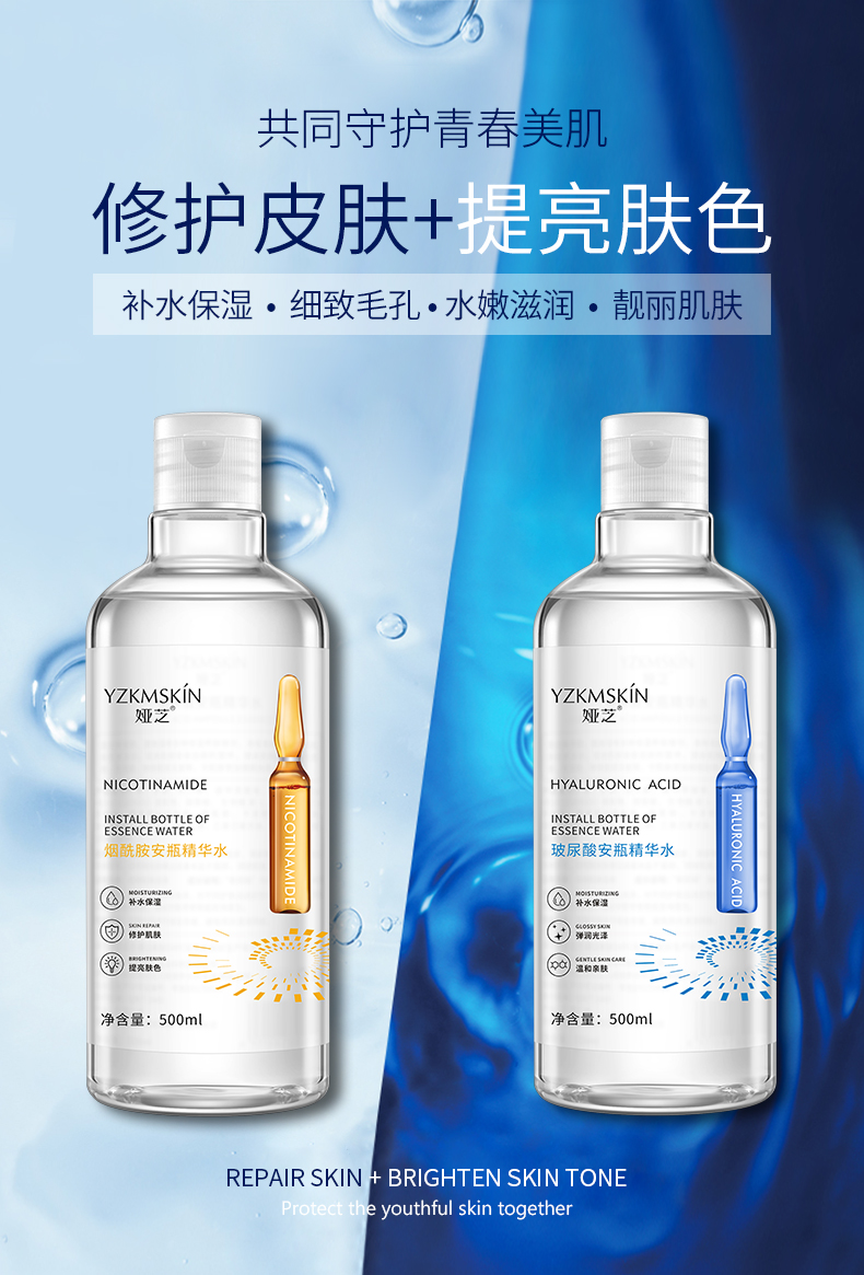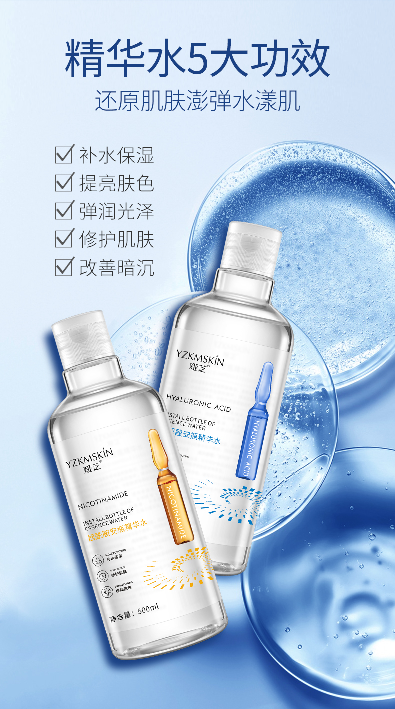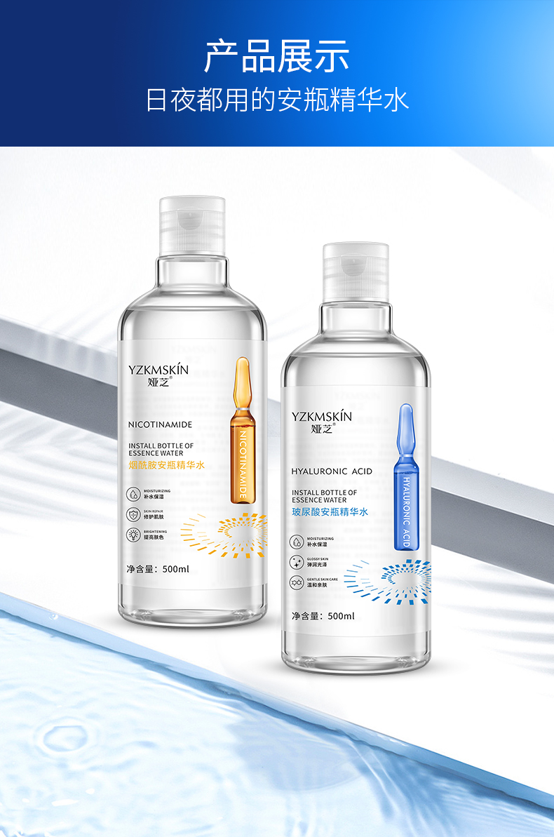 2瓶装】安瓶精华爽肤水玻尿酸烟酰胺补水收缩毛孔定妆化妆水男女
