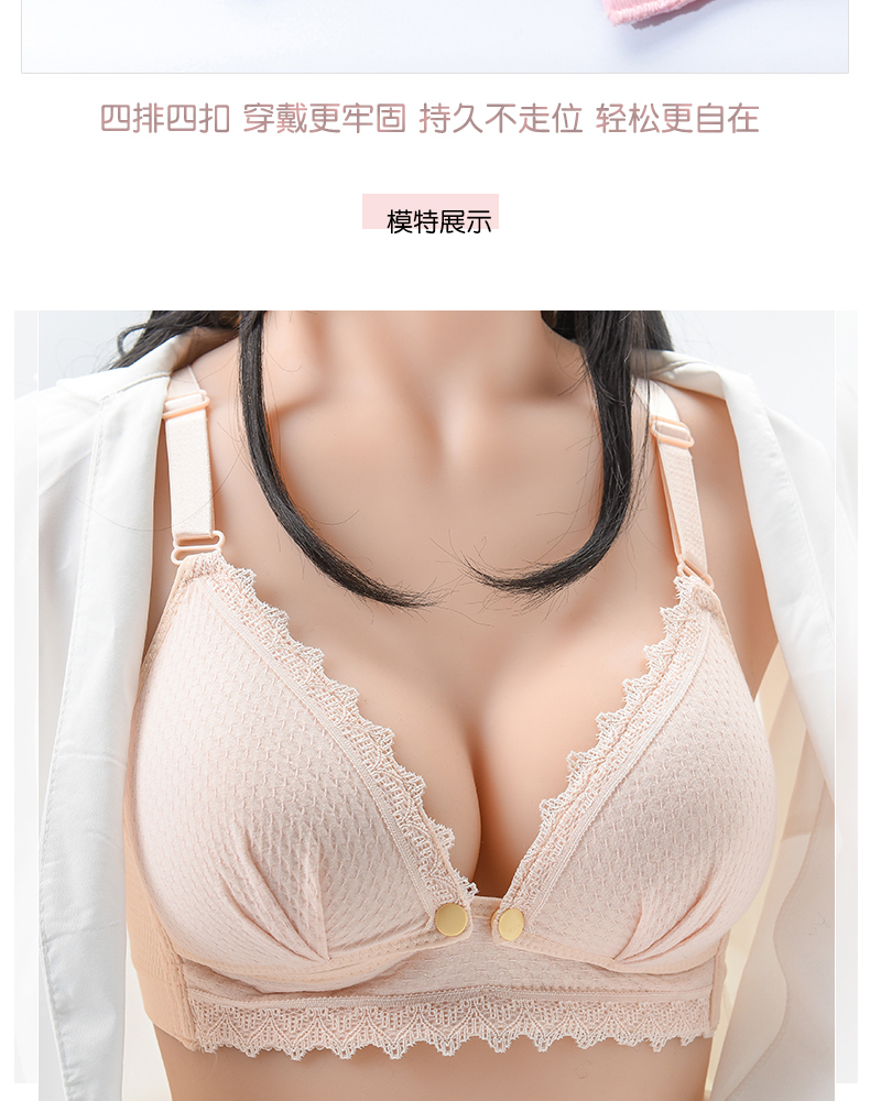 无钢圈零束缚,防走光,便捷前开扣,聚拢防下垂有型舒适,如婴儿肌肤般,柔软亲肤,手感细腻,健康舒适!