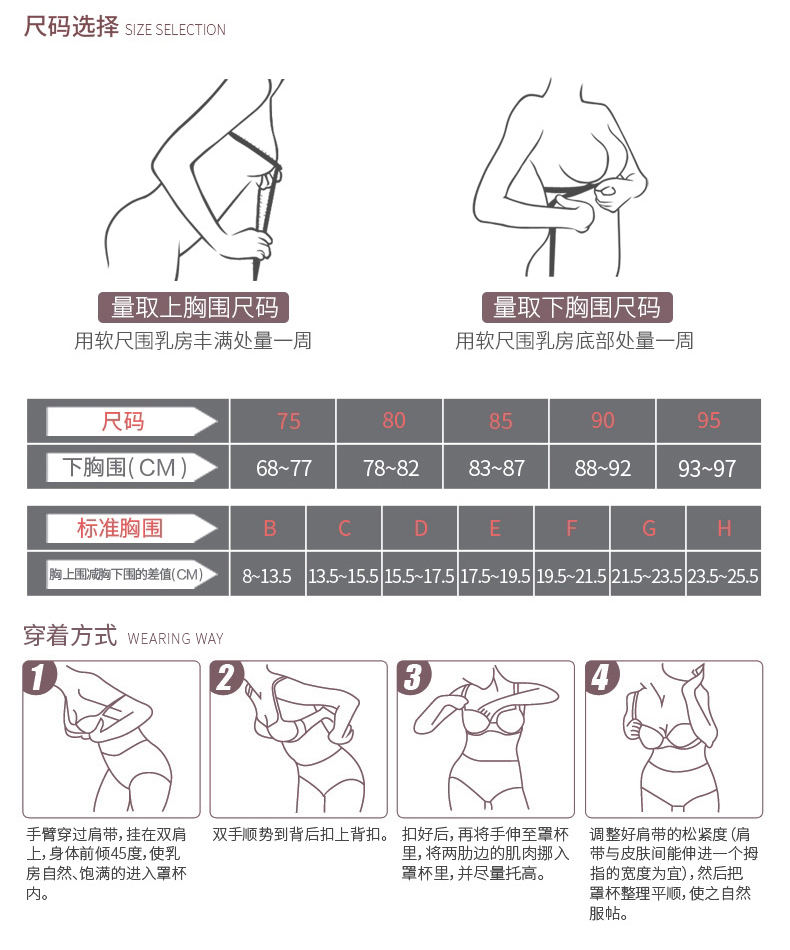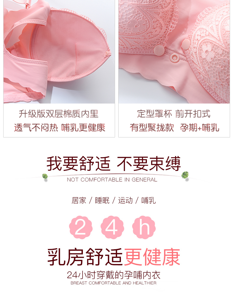 无钢圈零束缚,防走光,便捷前开扣,聚拢防下垂有型舒适,如婴儿肌肤般,柔软亲肤,手感细腻,健康舒适!