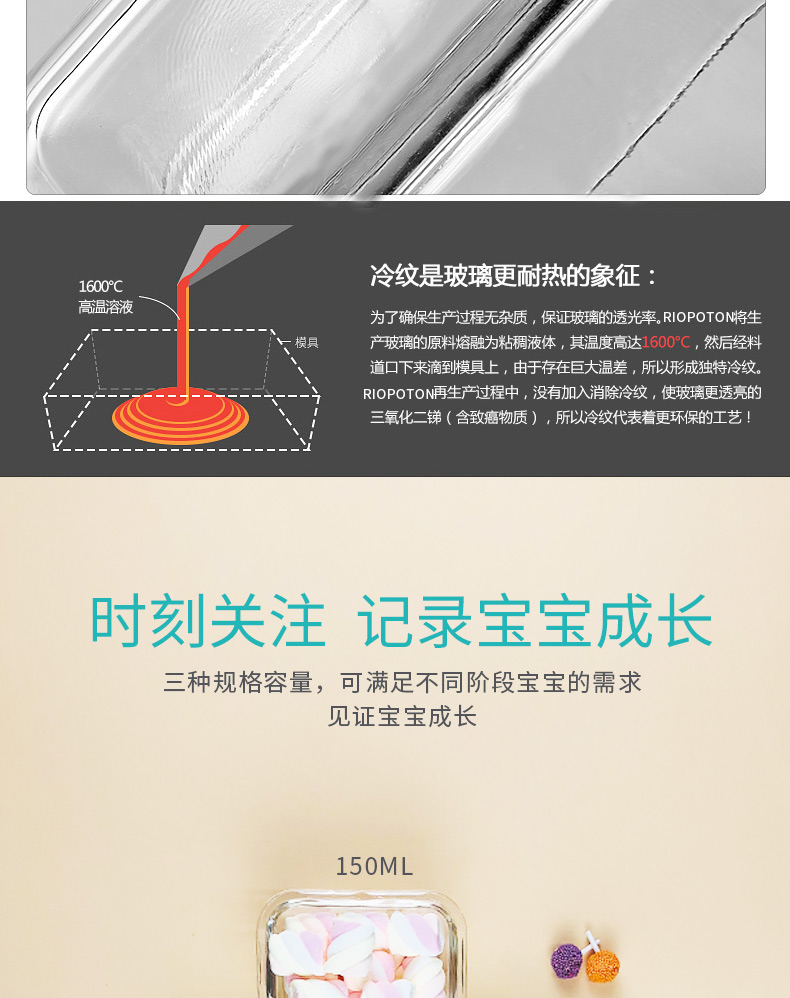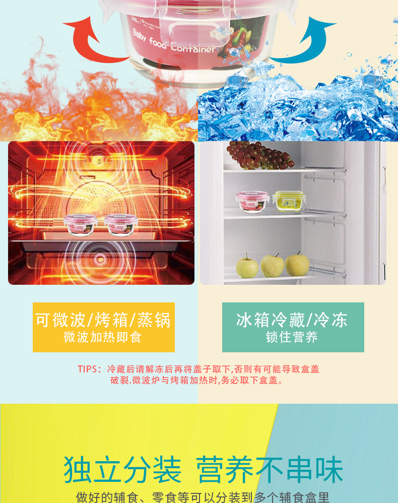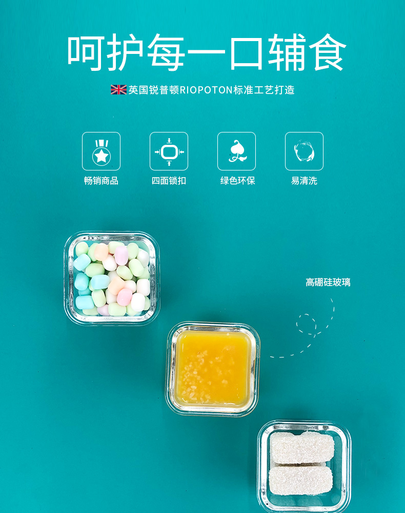 英国品牌,锐普顿宝宝玻璃辅食盒,纯净钠钙玻璃,食品级密封圈,高端工艺打造,可蒸煮可冷冻,密封便携,易于清洗,绿色健康,呵护每一口辅食。